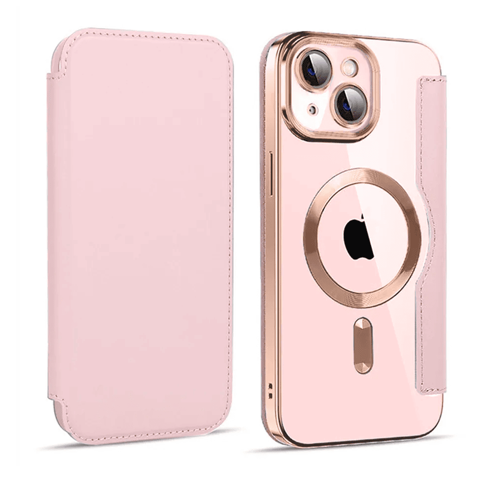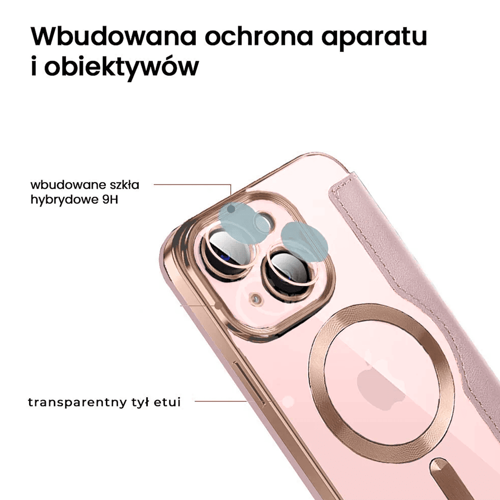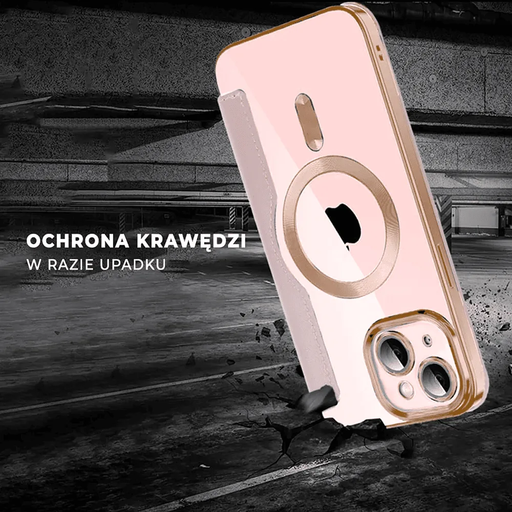 Etui do iPhone 15 typu książka Book Magsafe Lens Protect, z klapką, różowe