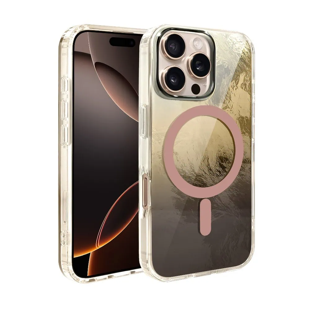 Etui do iPhone 16 Pro Max Metal Cam MagSafe Stand z podstawką, twarde, półprzeźroczyste, pustynny brąz