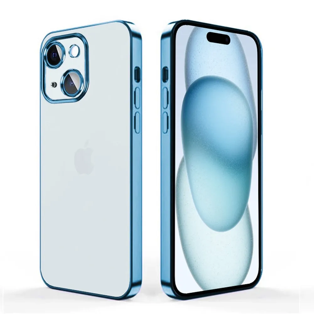 Metalowa osłona obiektywów szkło na aparat iPhone 15 Plus, niebieskie
