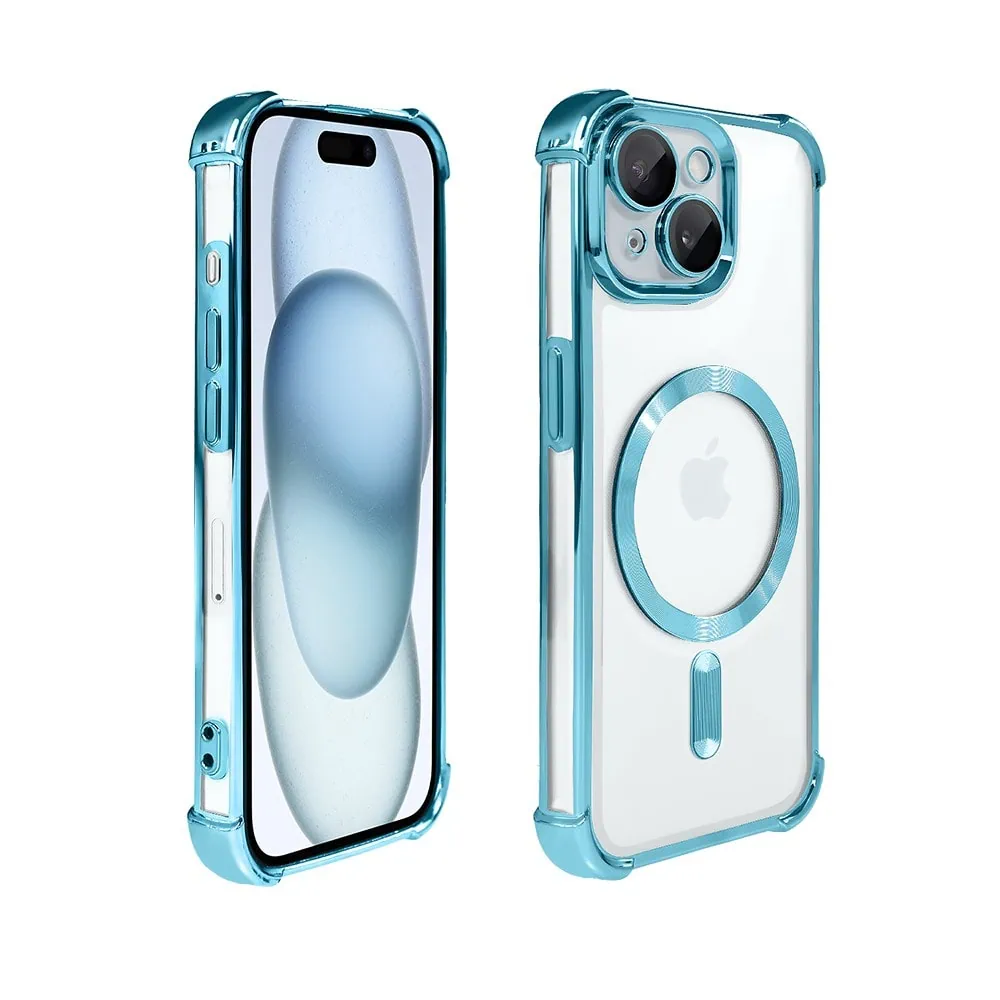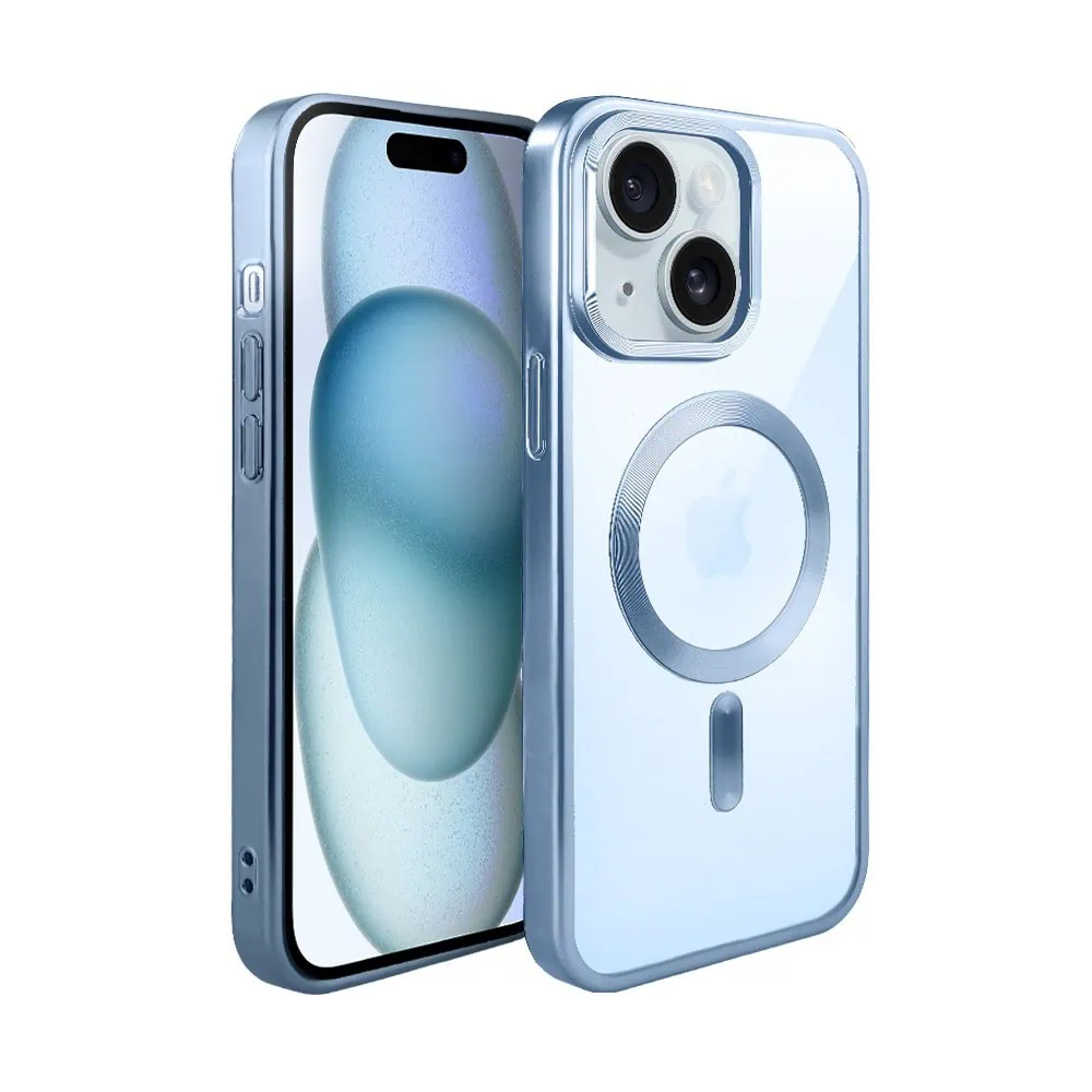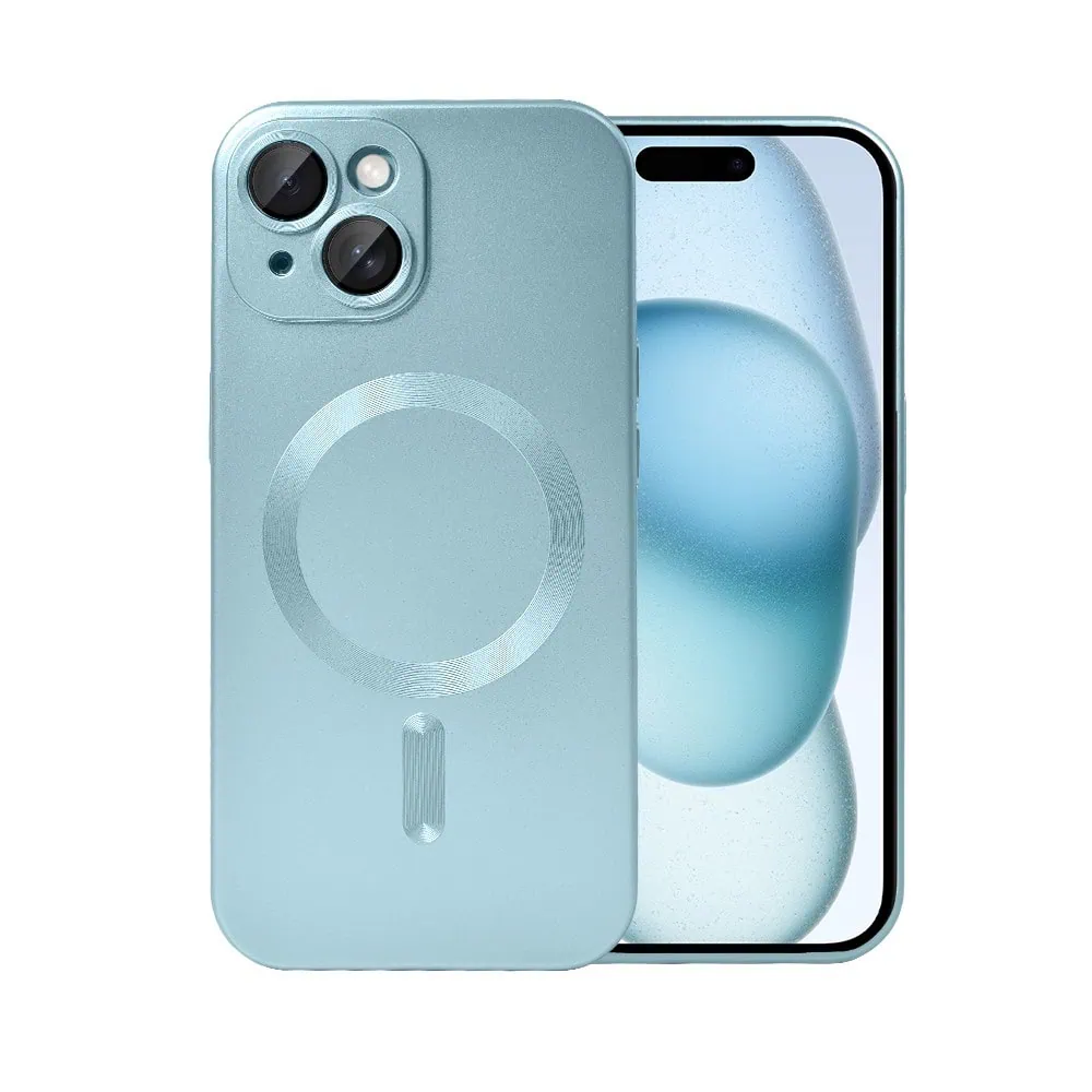 Etui do iPhone 15 Plus z Magsafe, cienkie, metaliczne, z osłoną aparatu, błękitne