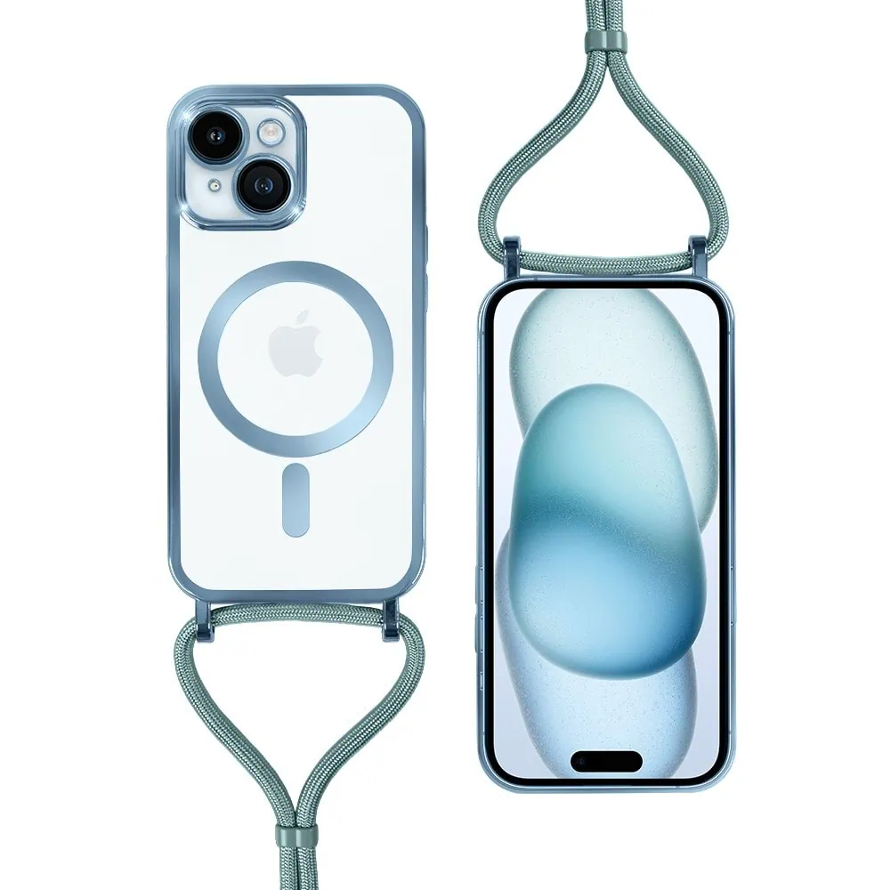 Etui do iPhone 15 Plus Magsafe Slim Crossbody, jak torebka, niebieskie