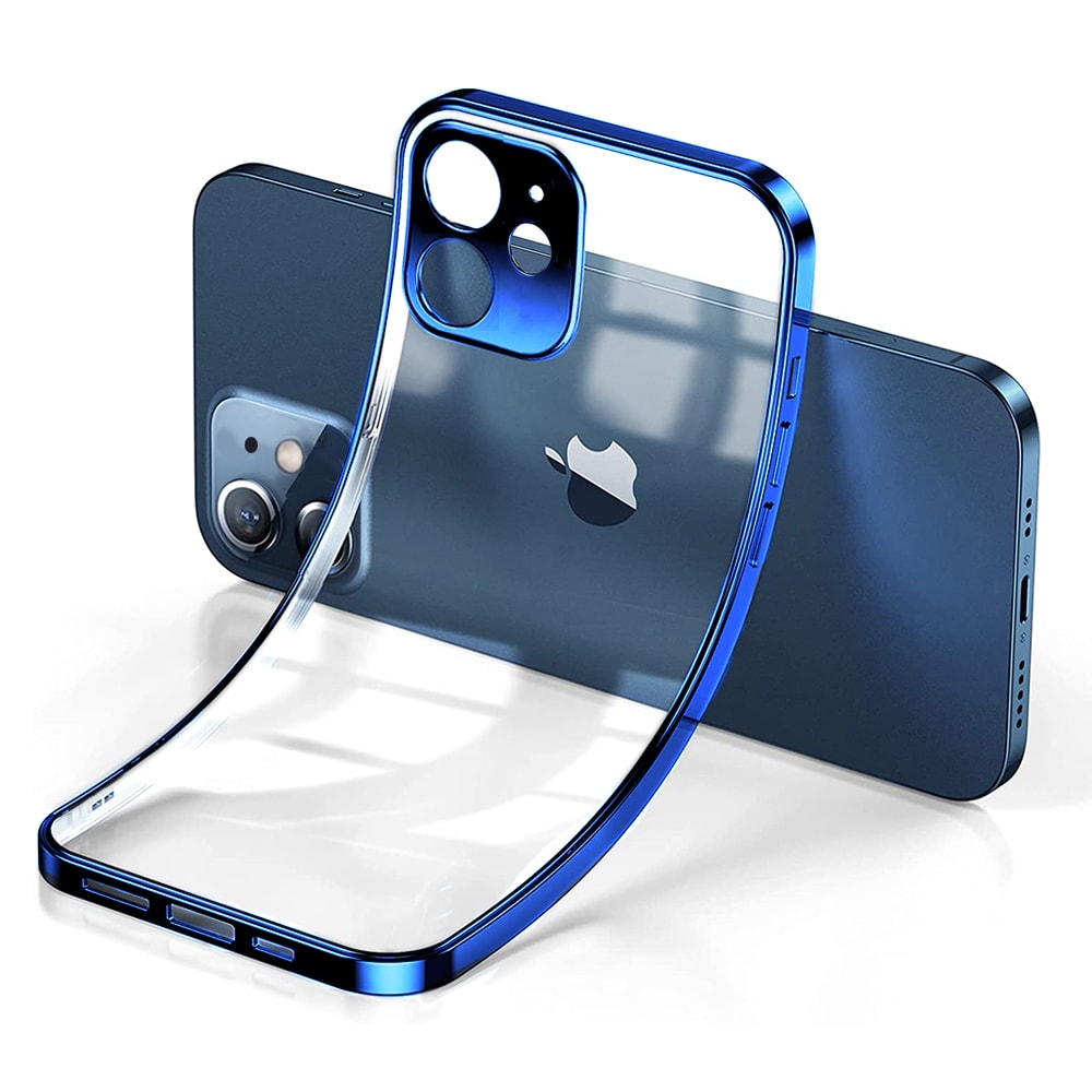 Etui JETech ochronne do iPhone 12 przeźroczysty tył HD granatowy kolor ramki