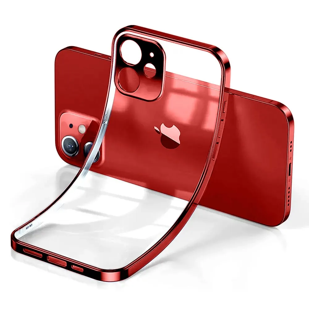 Etui JETech ochronne do iPhone 12 przeźroczysty tył HD czerwony kolor ramki