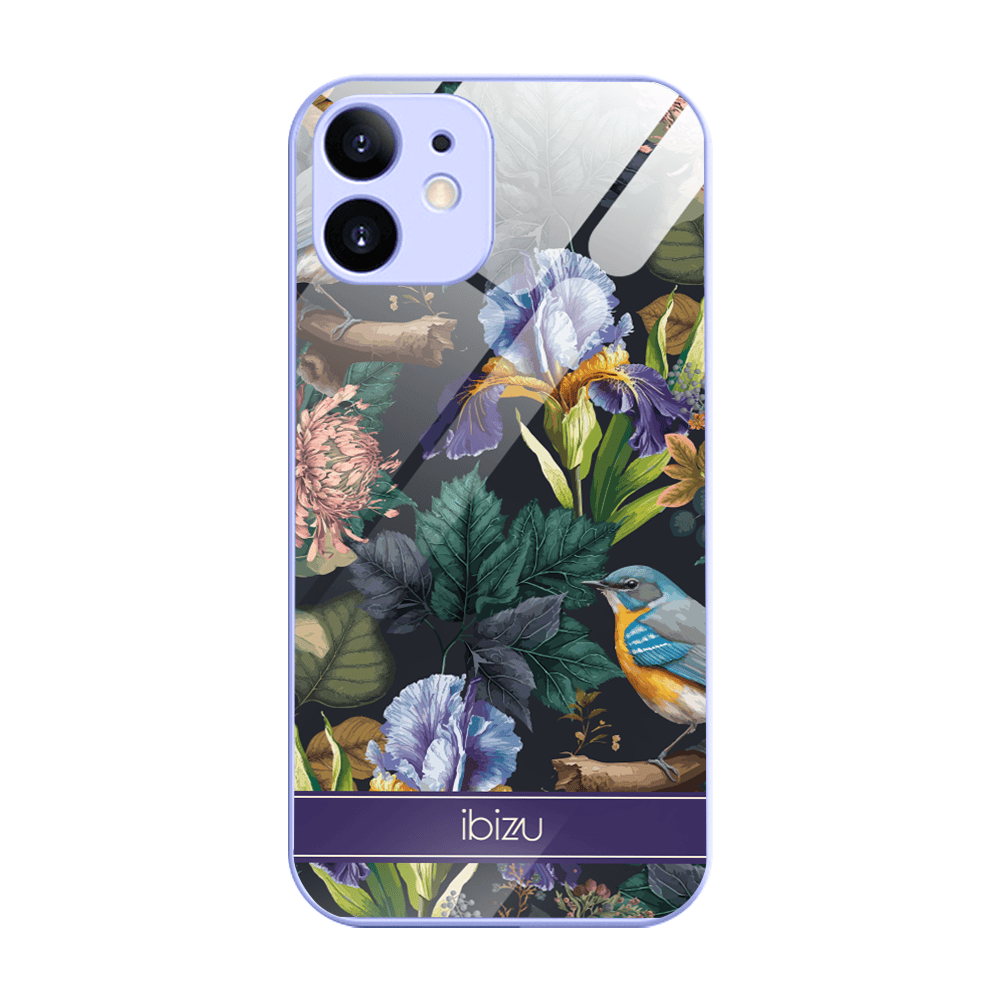 Etui do iPhone 12, Ibizu, szklany tył, osłona kamery, symfonia natury, fioletowe