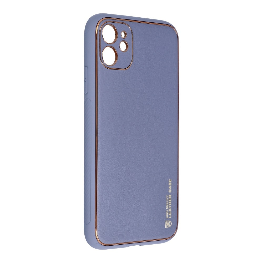 Etui do iPhone 12 minimalistyczne skórzane z ochroną aparatu i złotym wykończeniem, liliowe fioletowe