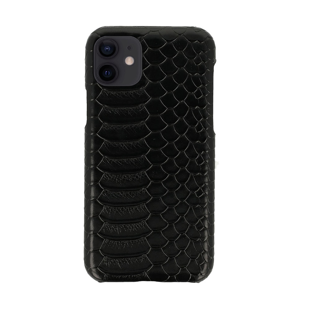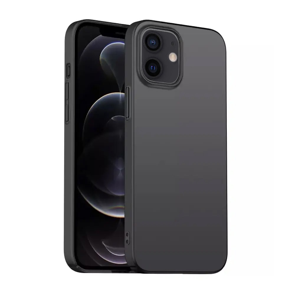 Etui do iPhone 12 eleganckie cienkie ze zdobieniami i widocznym logo, czarne