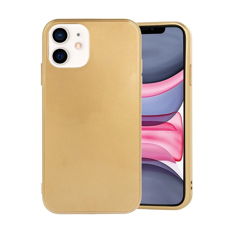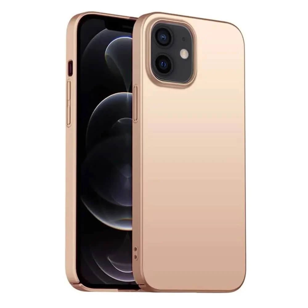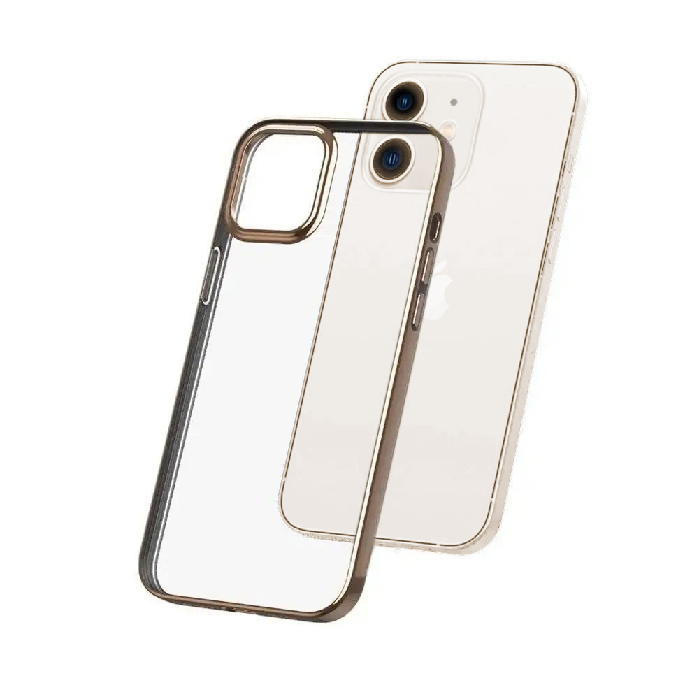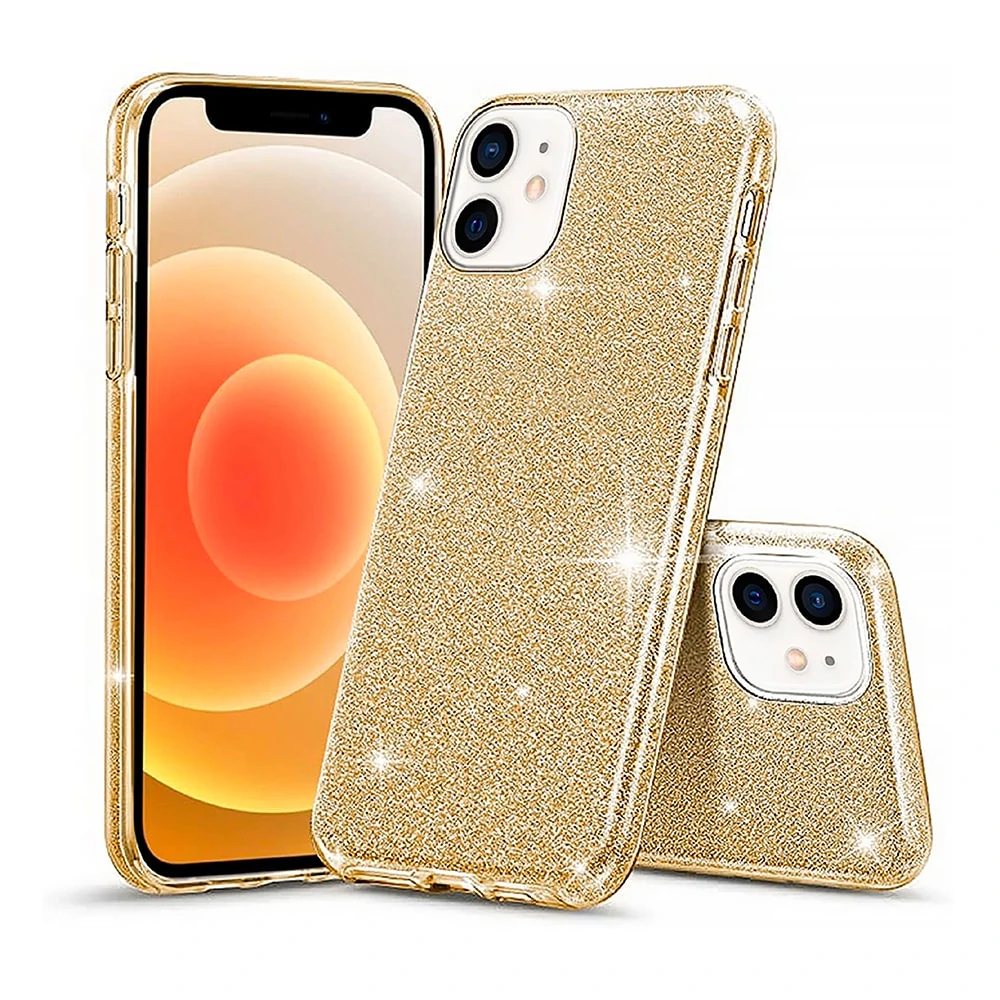 Etui do iPhone 12 eleganckie cienkie ze zdobieniami i widocznym logo, złote