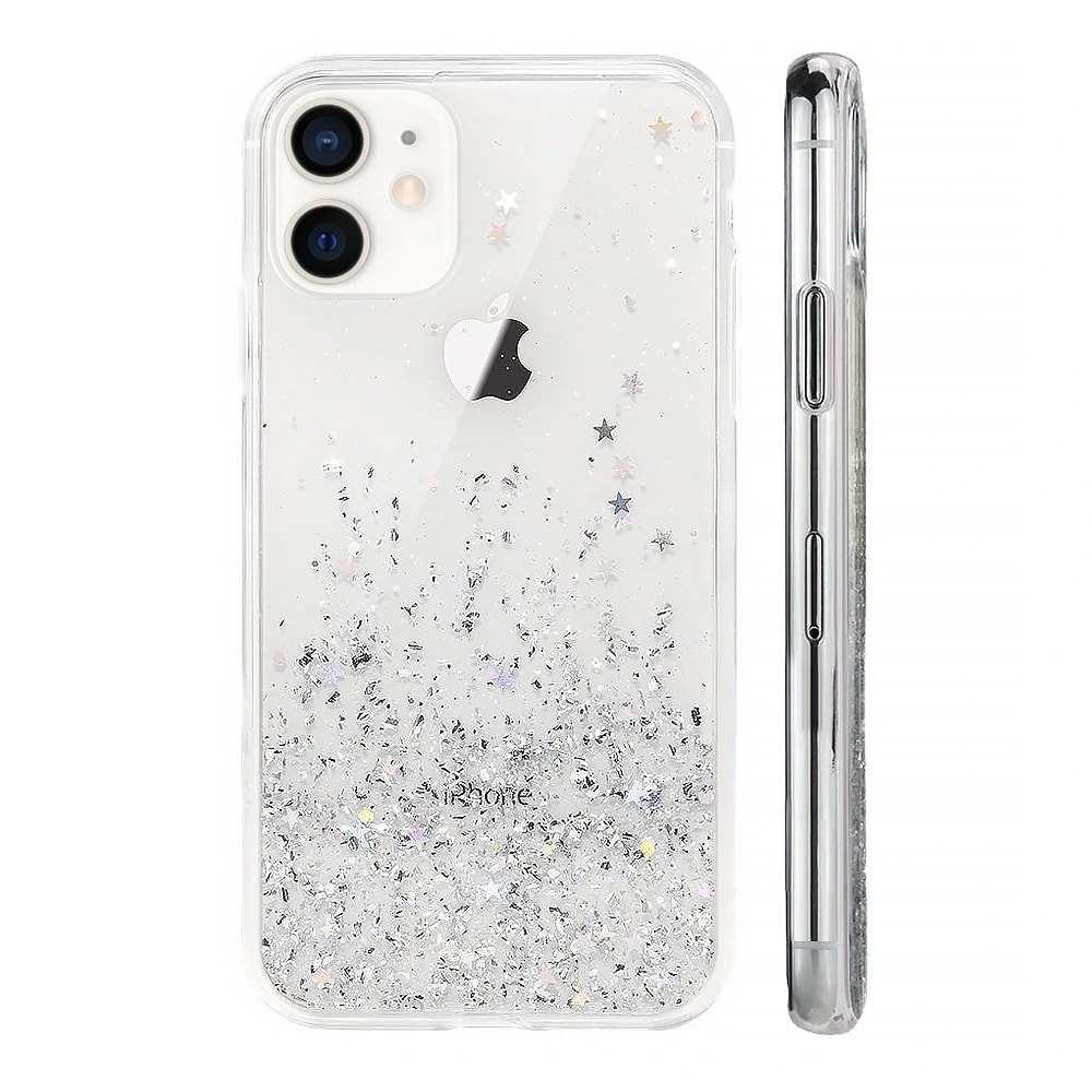 Etui do iPhone 12 z brokatem, różowe, hybrydowy szklany tył Liquid Crystal, przeźroczyste