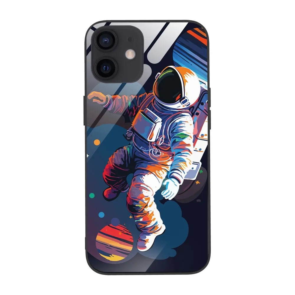 Etui do iPhone 12, szklany tył, "Kosmiczny podróżnik", czarne