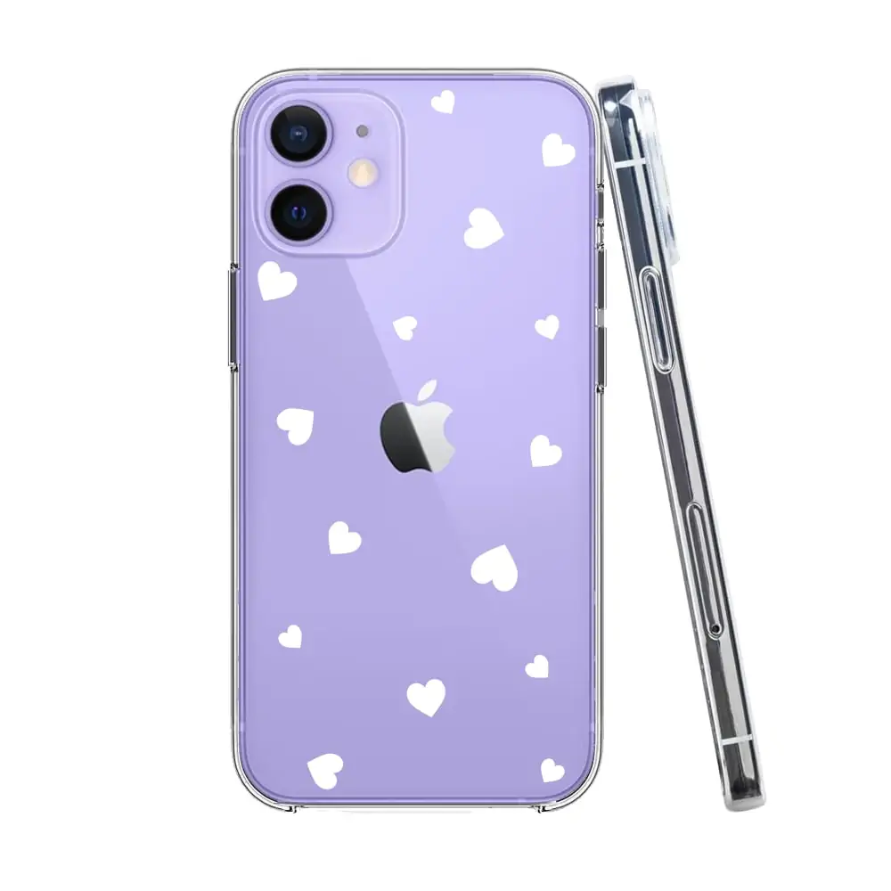 Etui do iPhone 12 silikonowe stylowe białe serduszka