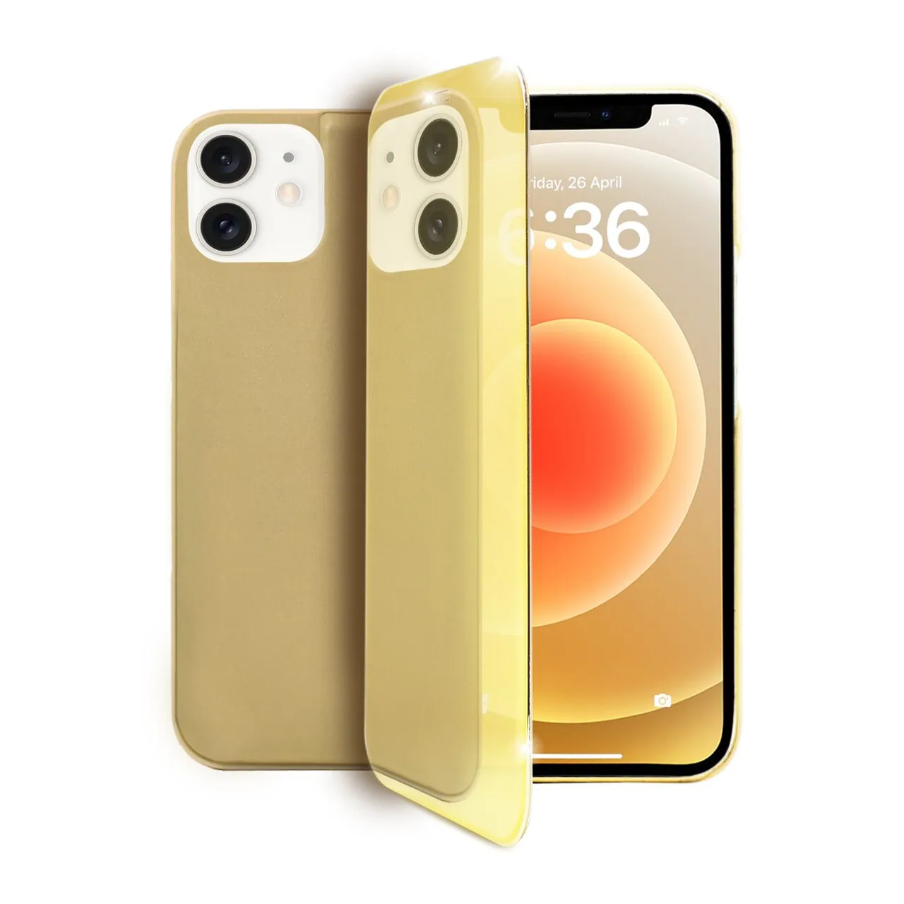 Etui do iPhone 12 Mirror View zamykane typu książka, eleganckie lustrzane, złote