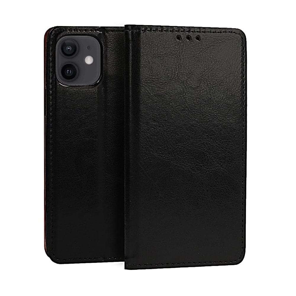 Etui do iPhone 12 książkowe na magnes z trwałego niebrudzącego się materiału, czarne