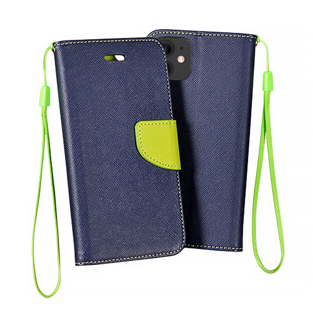 Etui do iPhone 12 książkowe na magnes z trwałego niebrudzącego się materiału, granatowe