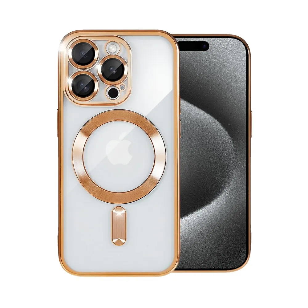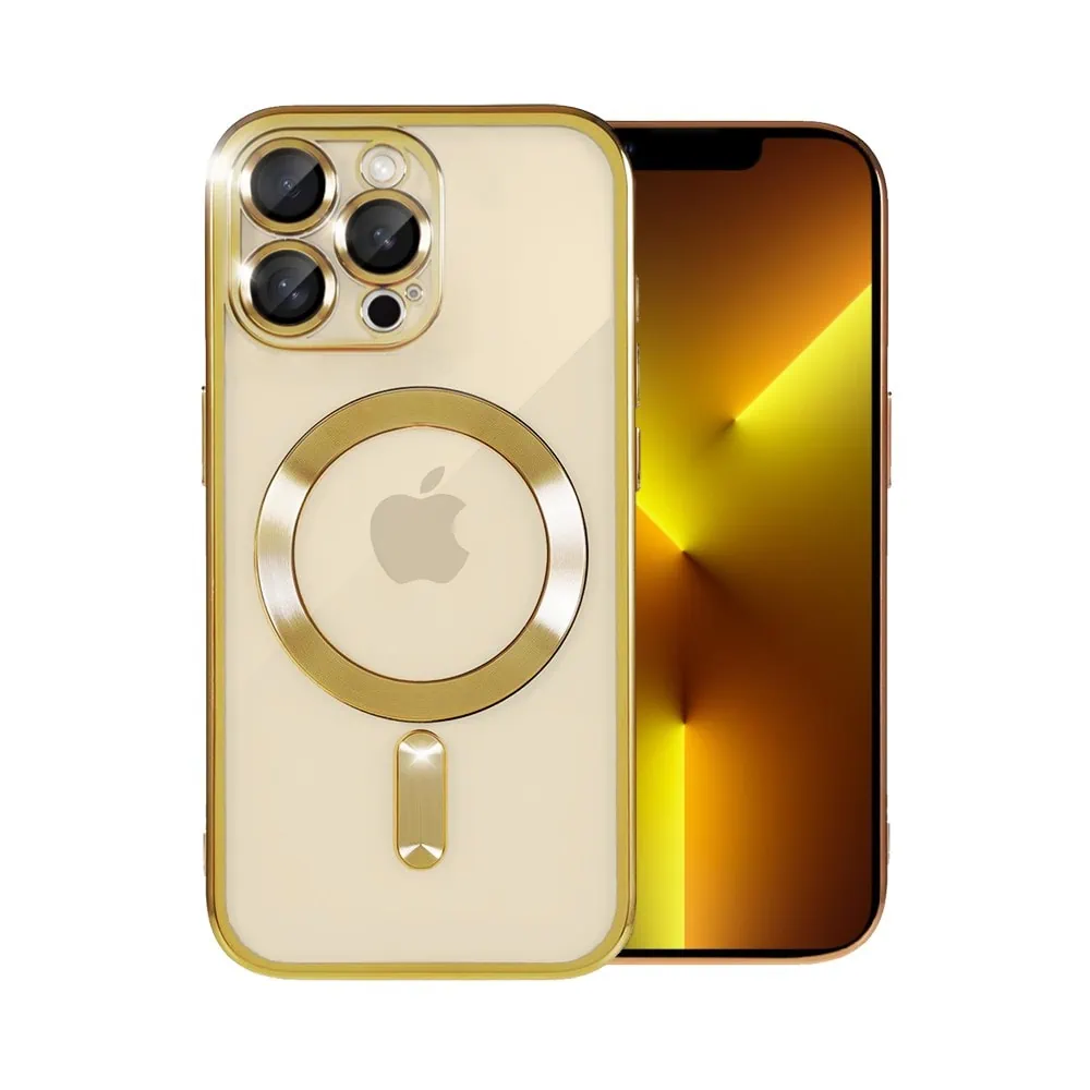Etui do iPhone 13 Pro MagSafe Luxury Protect przeźroczyste, hybrydowa ochrona kamery, złote