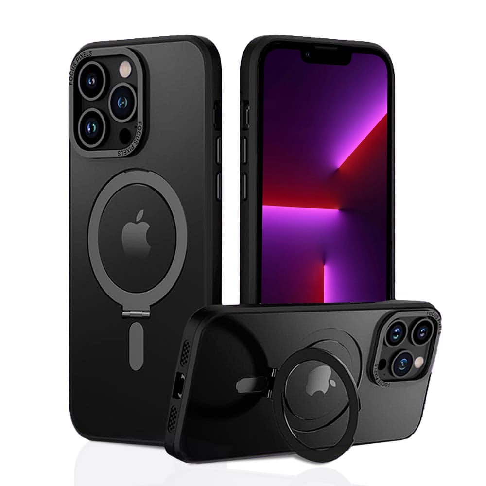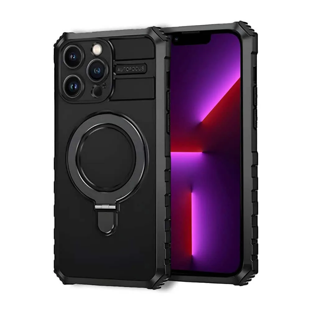Etui do iPhone 13 Pro, pancerne, z osłoną aparatu i metalową podstawką MagSafe, czarne