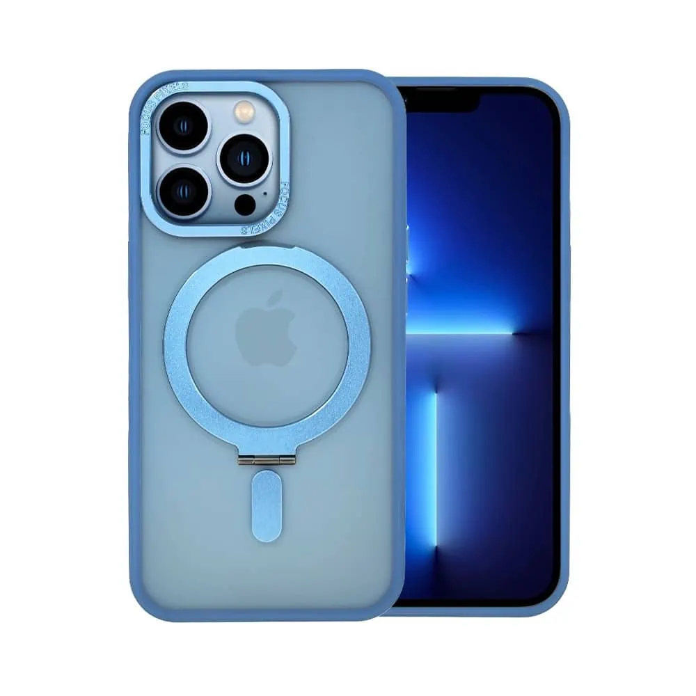 Etui do iPhone 13 Pro Metal Cam MagSafe Stand z podstawką, twarde, półprzeźroczyste, jasno niebieskie