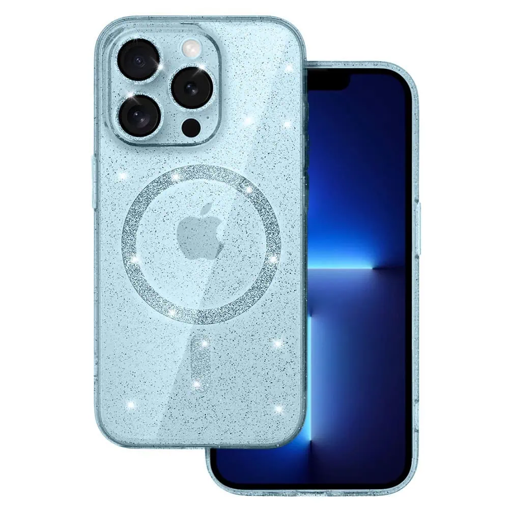 Etui do iPhone 13 Pro z Magsafe, przeźroczyste, błyszczący brokat, niebieskie