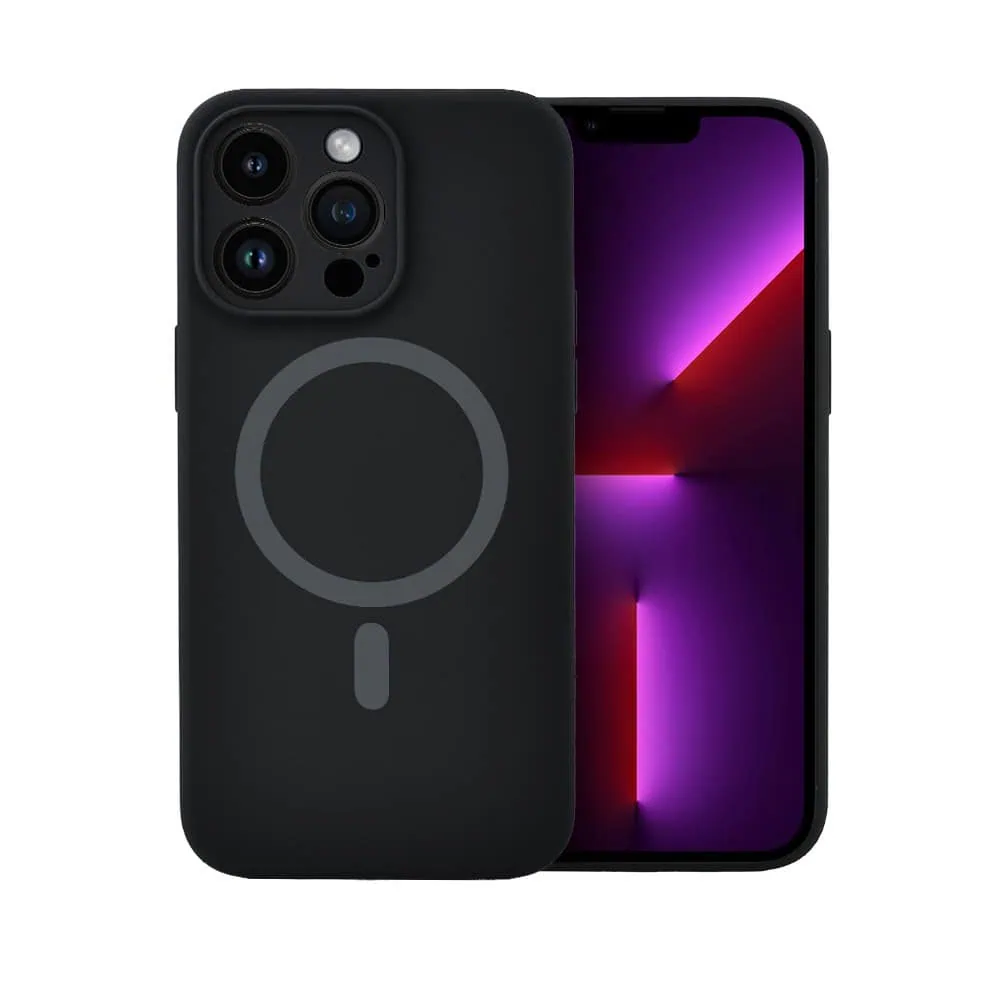 Etui do iPhone 13 Pro, silikonowe z MagSafe, mikrofibra soft touch z osłoną na aparat, czarne