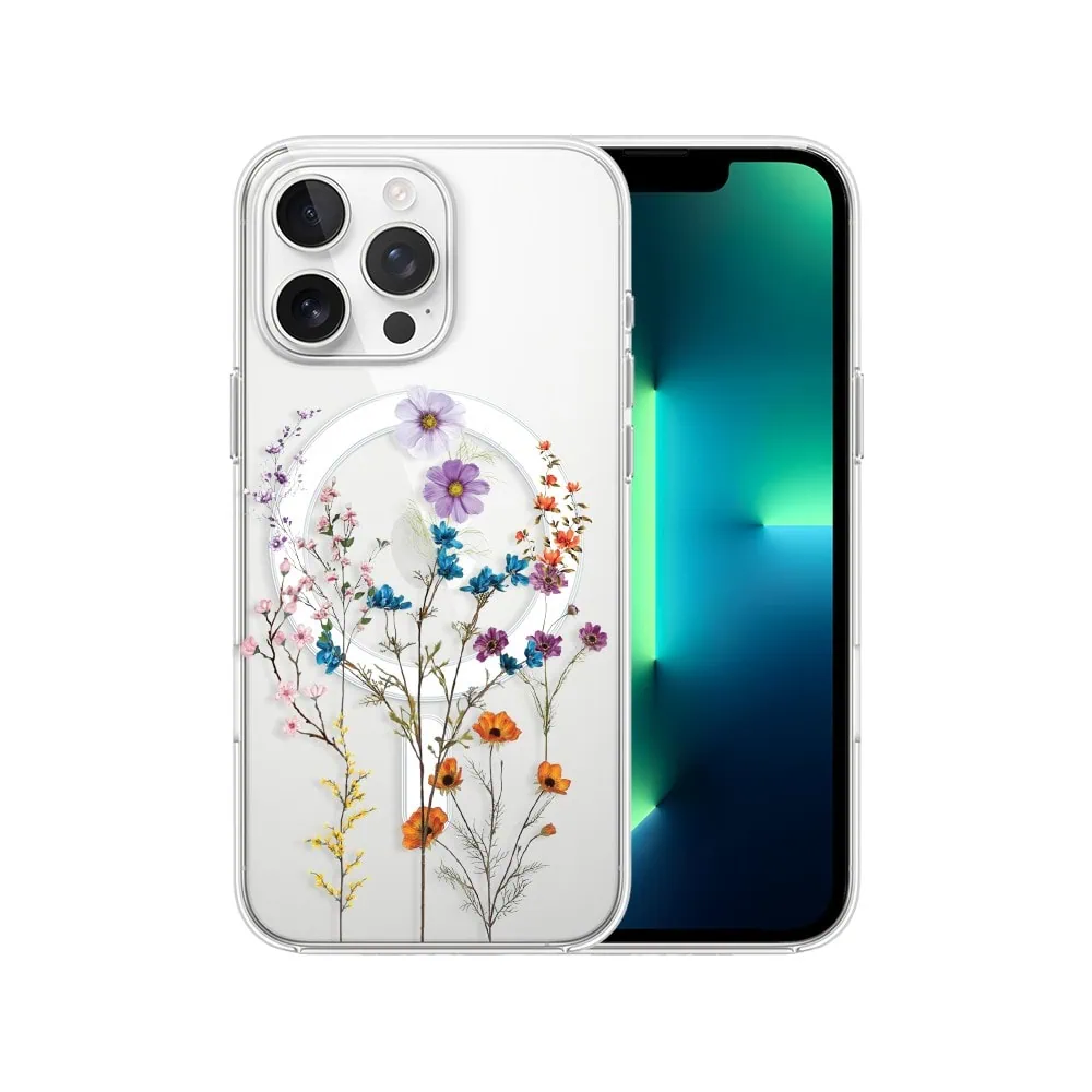 Etui do iPhone 13 Pro z MagSafe, kwiaty różnokolorowe, przeźroczyste