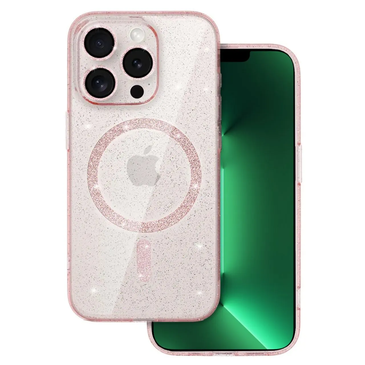 Etui do iPhone 13 Pro z Magsafe, przeźroczyste, błyszczący brokat, różowe