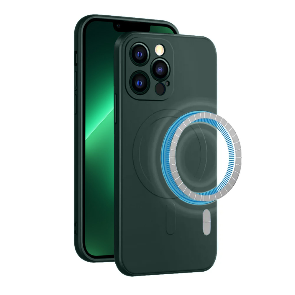 Etui do iPhone 13 Pro silikonowe z mikrofibrą Premium Soft Touch MagSafe ochrona aparatu, ciemno zielone