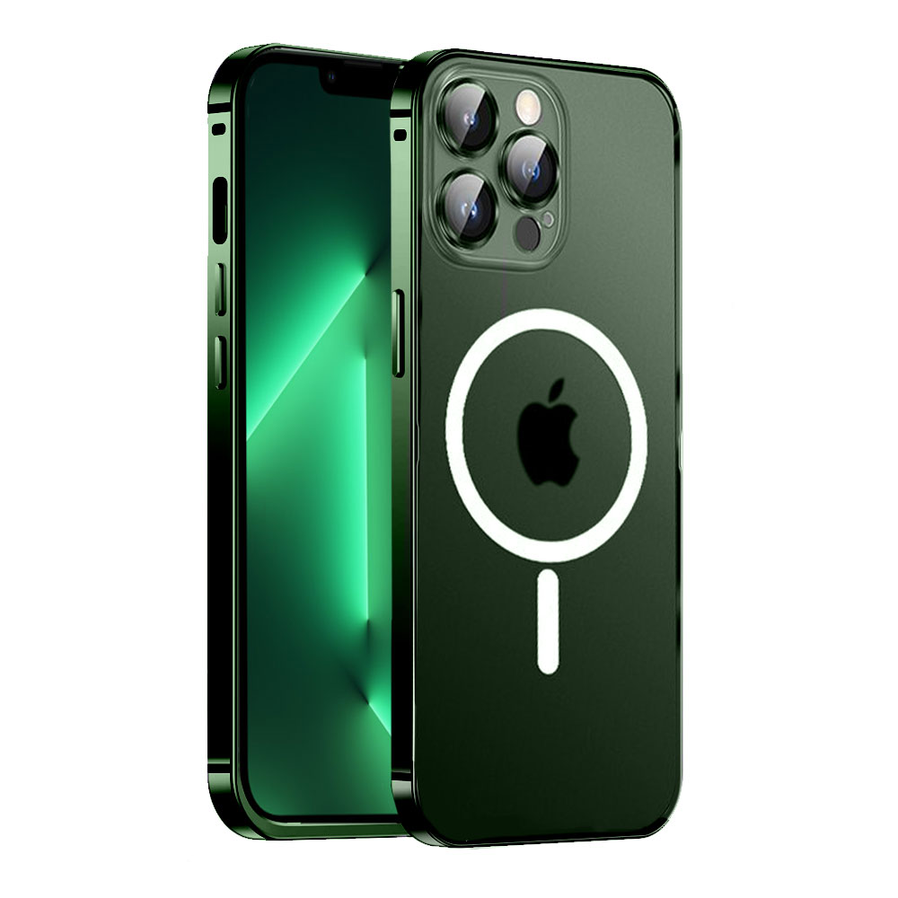 Etui do iPhone 13 Pro Magsafe Armor metalowa ramka, twarde aluminium, alpejska zieleń