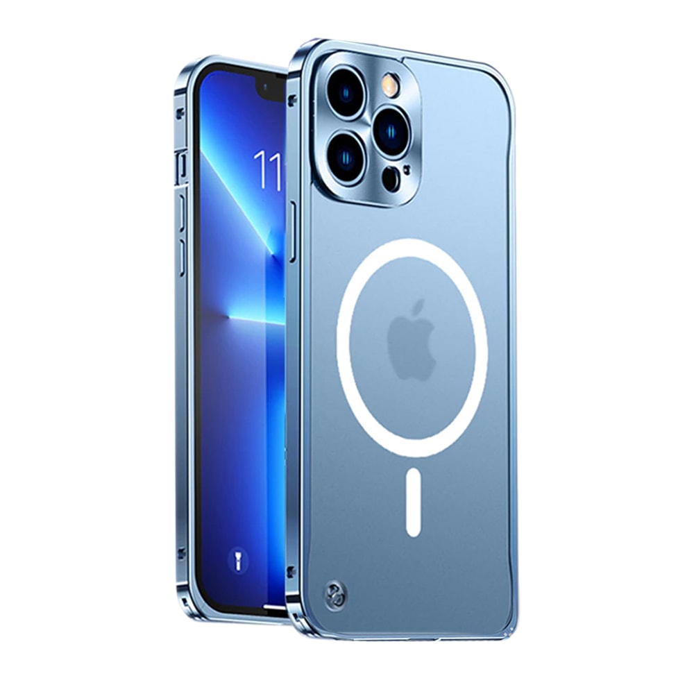 Etui do iPhone 13 Pro Magsafe Armor metalowa ramka, twarde aluminium, górski błękit
