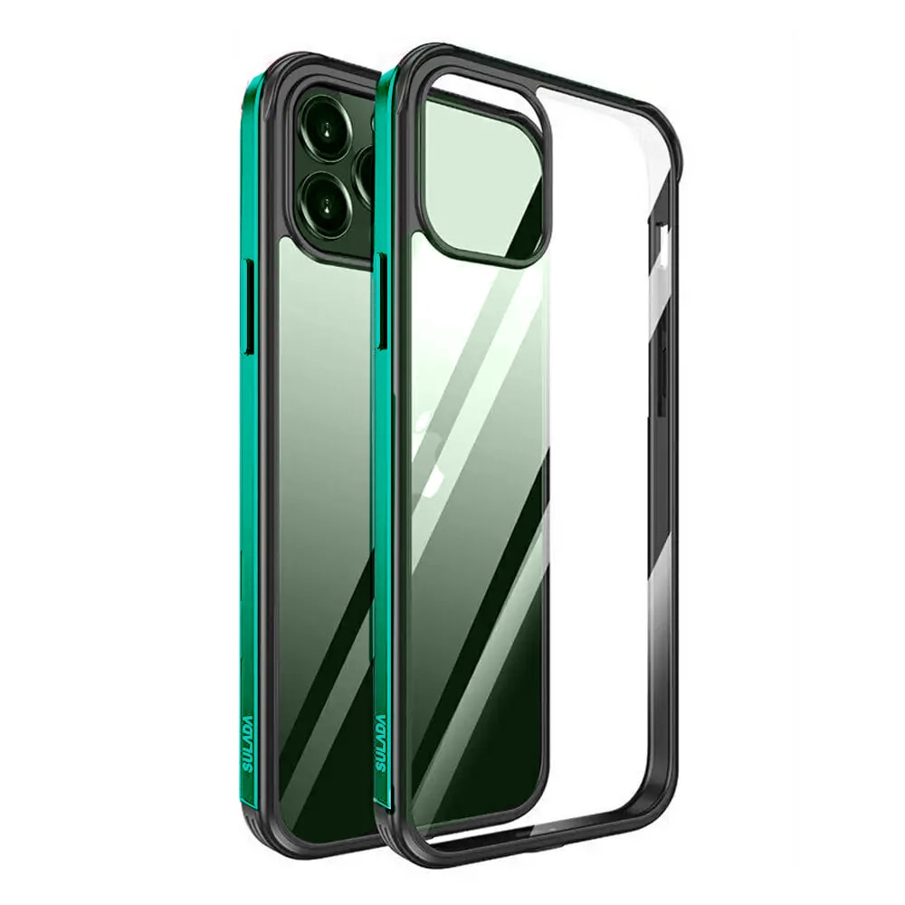 Etui do iPhone 13 Pro Max krystaliczny tył z metalową ramką, trwałe, eleganckie Sulada oryginal, zielone