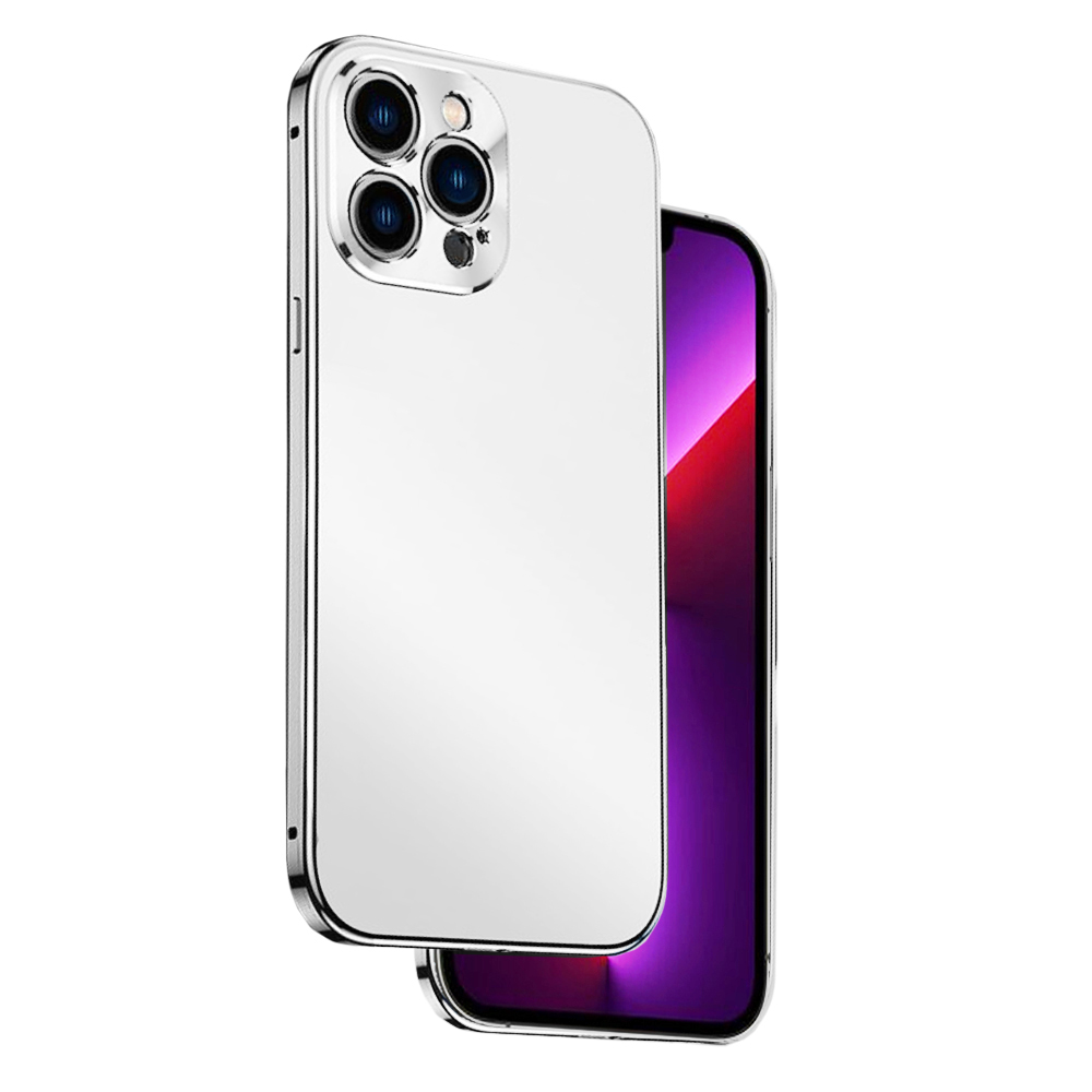 Etui do iPhone 13 Pro Max Luxury Skin ultra cienkie, pełny tył z metalową ramką, srebrne