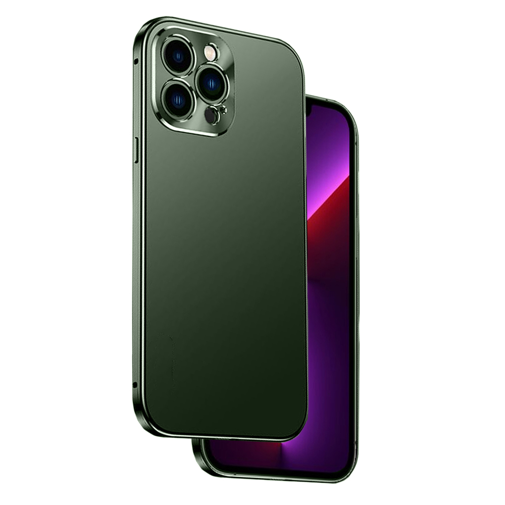 Etui do iPhone 13 Pro Max Luxury Skin ultra cienkie, pełny tył z metalową ramką, alpejska zieleń