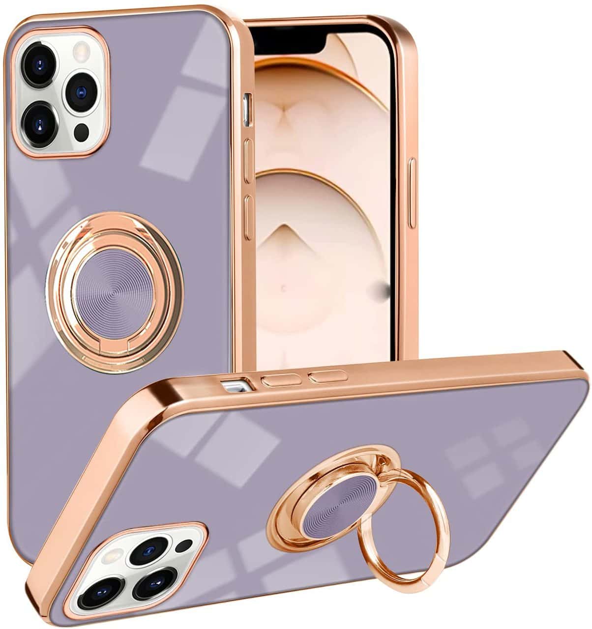 Etui do iPhone 13 Pro Max eleganckie, ze złotym, metalowym uchwytem i zdobieniami, fioletowy