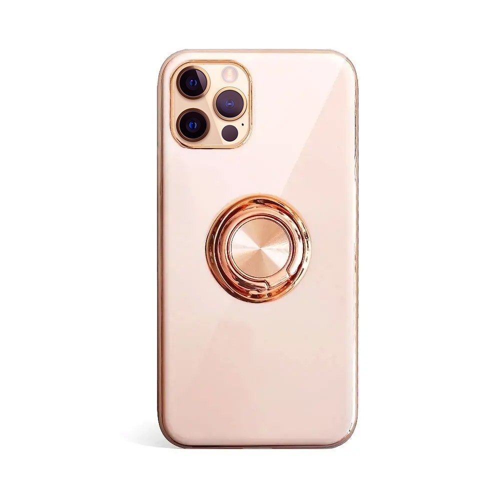 Etui do iPhone 13 Pro eleganckie, ze złotym metalowym uchwytem i zdobieniami, złoty róż