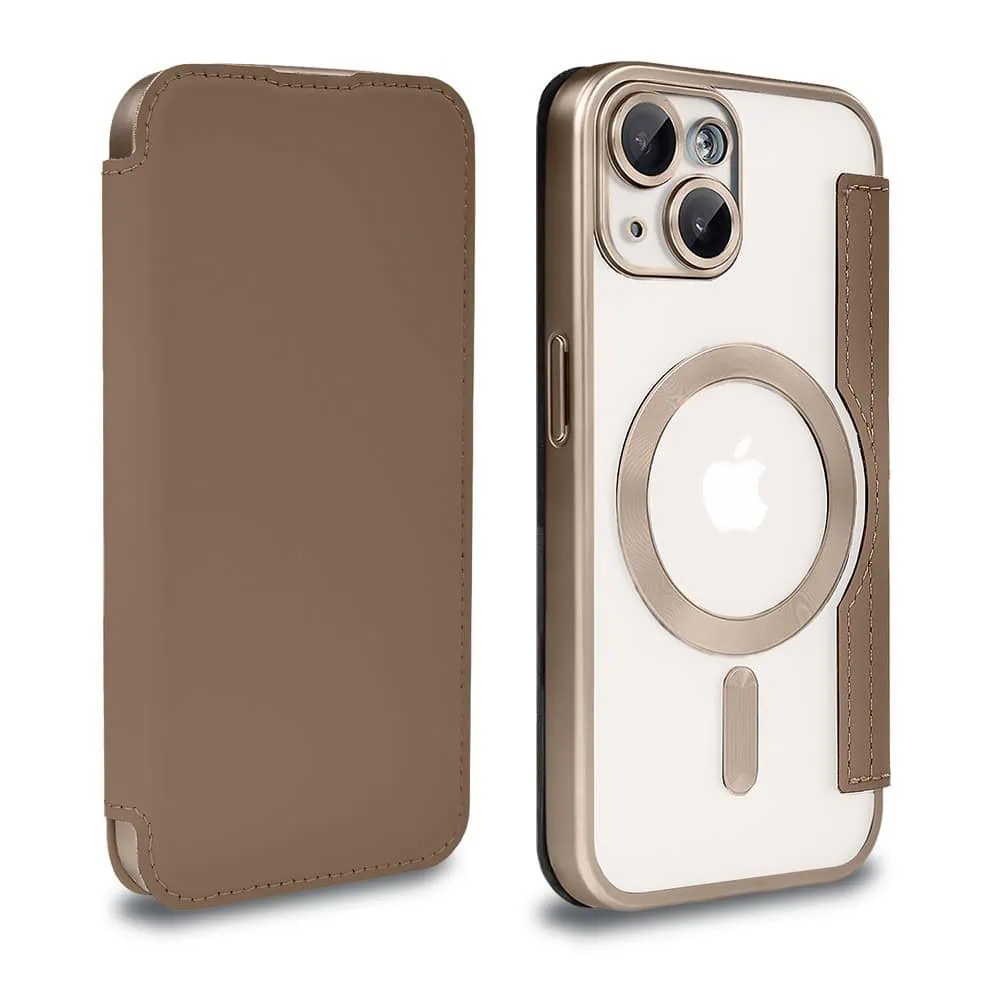 Etui do iPhone 13 typu książka Book Magsafe Lens Protect, z klapką, pustynny brąz