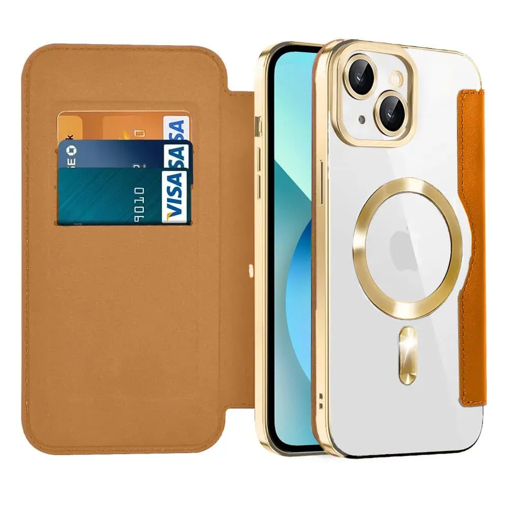 Etui do iPhone 13 typu książka Book Magsafe Lens Protect, z klapką, złote