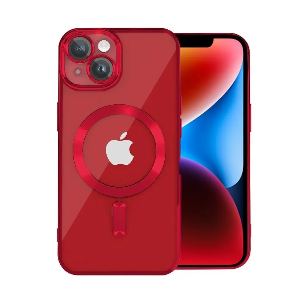 Etui do iPhone 14 MagSafe Luxury Protect przeźroczyste, hybrydowa ochrona kamery, czerwone