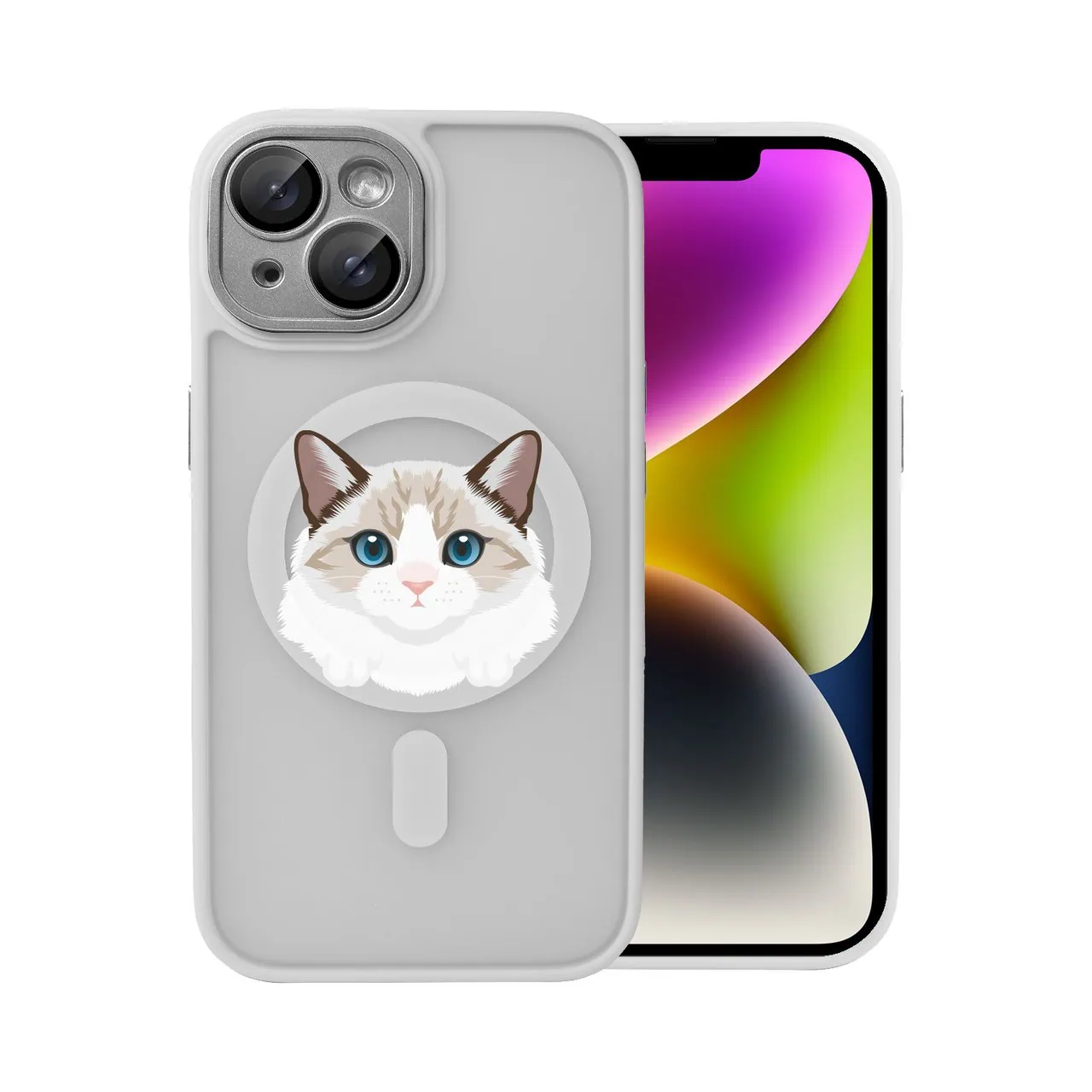 Etui do iPhone 14 Color Flush z Magsafe, z osłoną aparatu, kot birmański, popielate