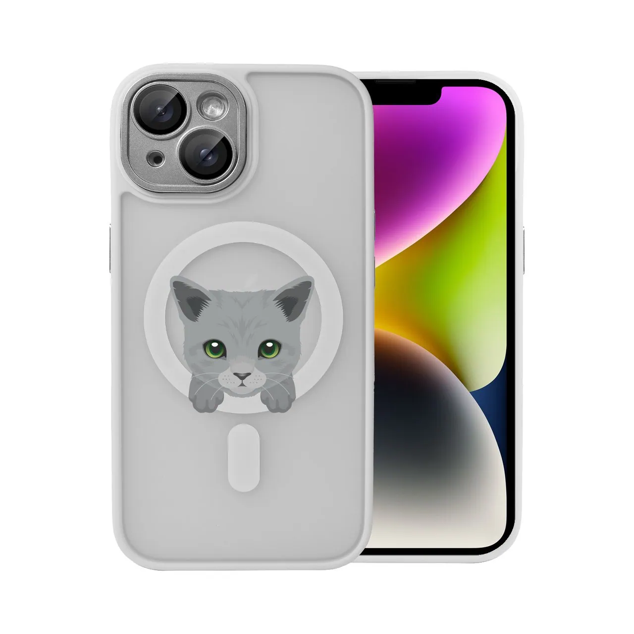 Etui do iPhone 14 Color Flush z Magsafe, z osłoną aparatu, kot brytyjski, popielate