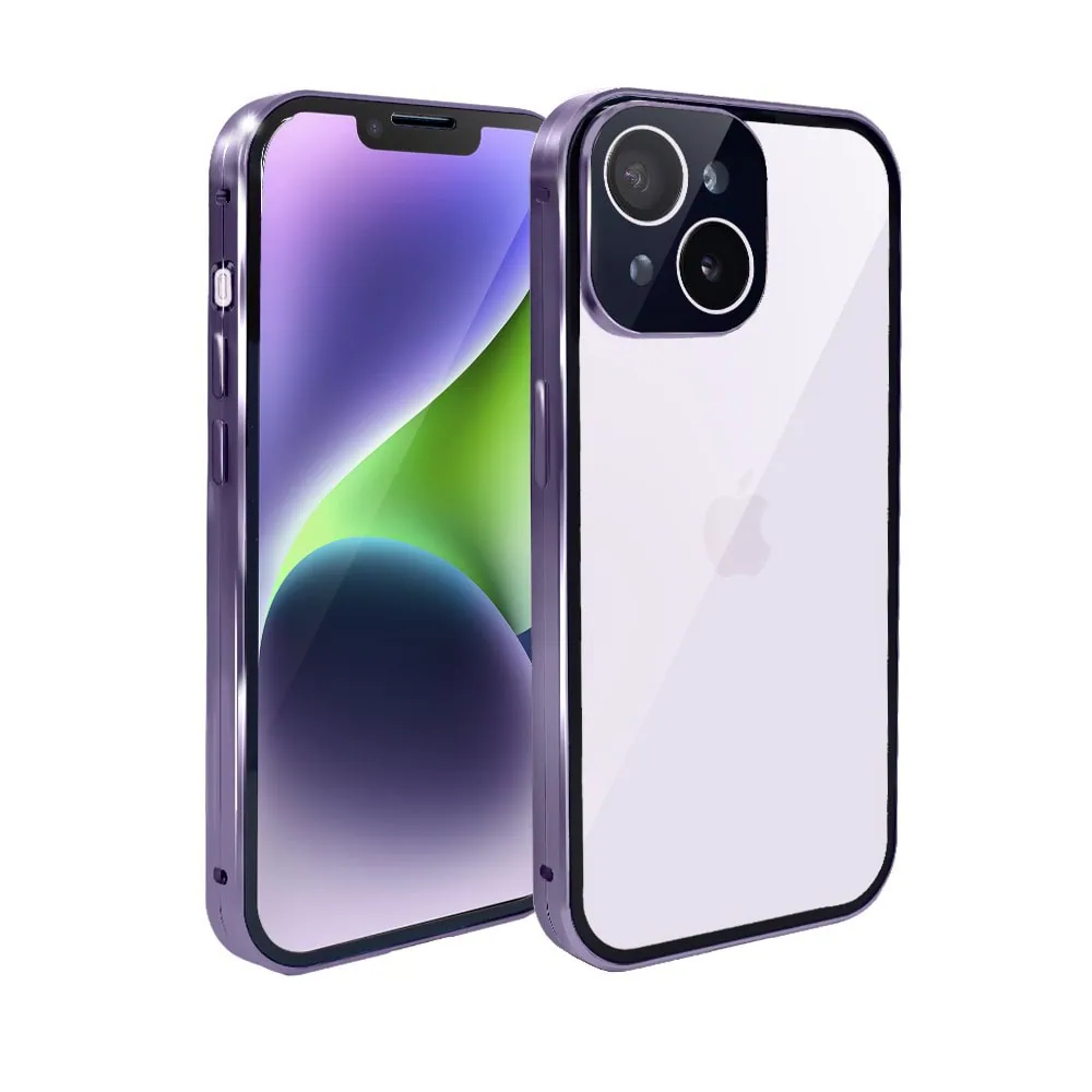 Obudowa do iPhone 14 podwójna szyba i polerowane aluminium 360° magnetyczna, z osłoną aparatu, fioletowa