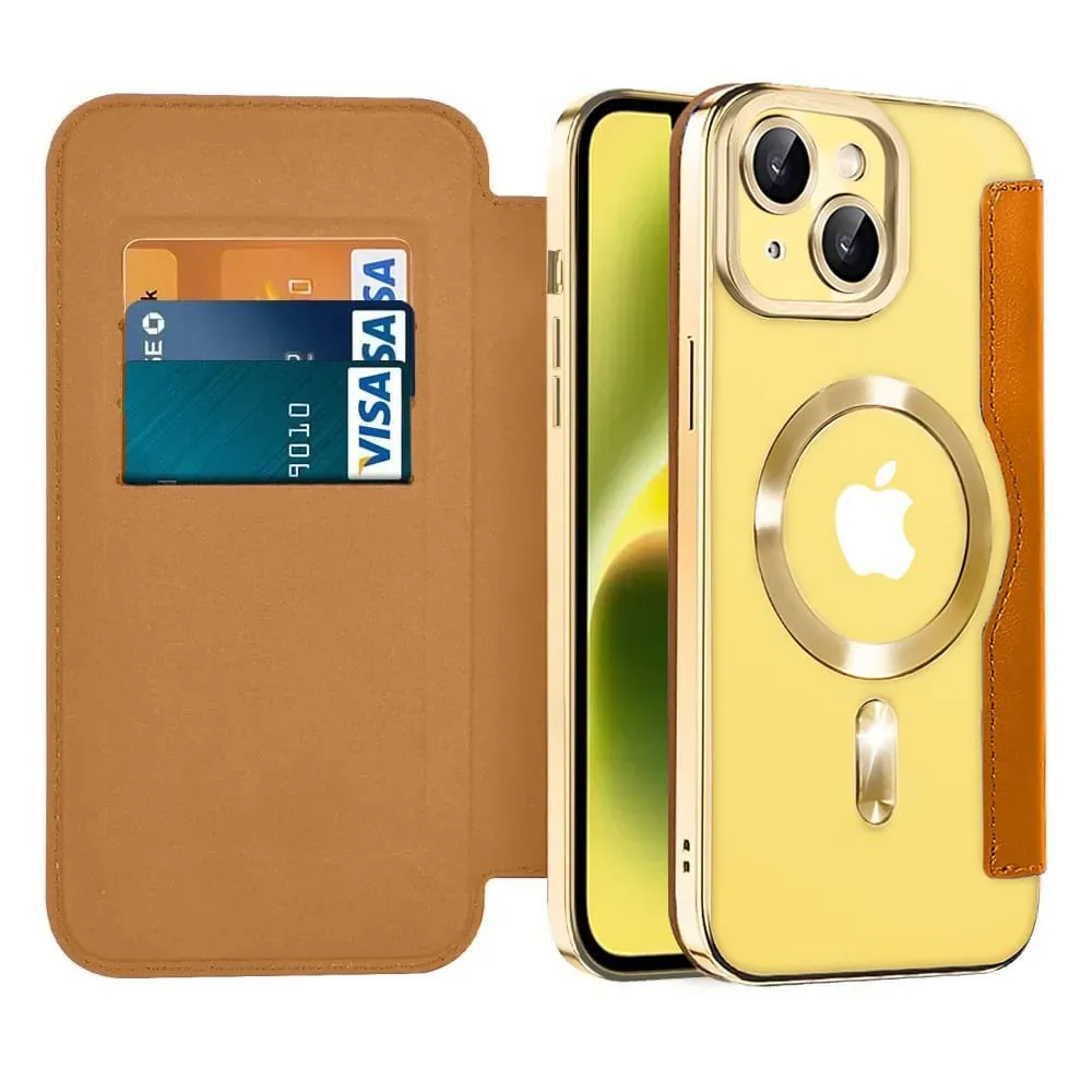 Etui do iPhone 14 Plus klasyczne z magnetyczną klapką, złote