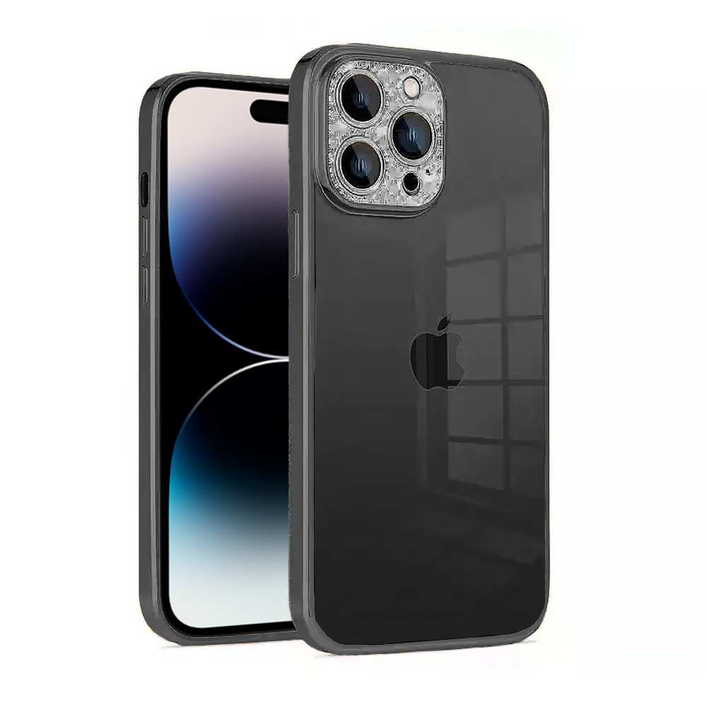 Etui do iPhone 14 Pro Max Diamond Crown, diamentowa osłona kamery, półmatowe, czarne