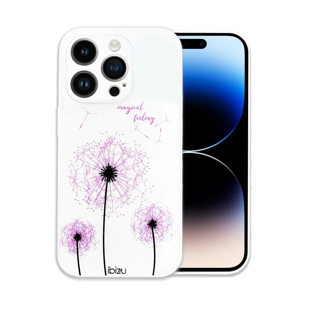 Etui do iPhone 14 Pro Max Ibizu Magic series, szklany tył, zmienny wzór, dmuchawce