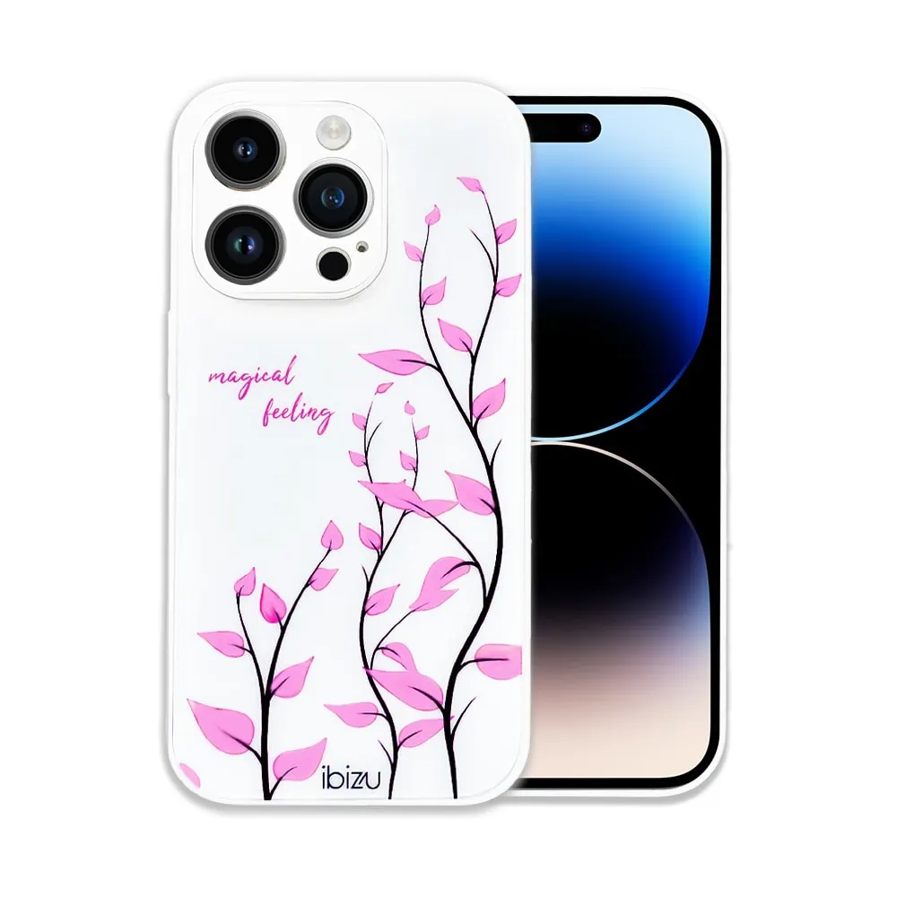 Etui do iPhone 14 Pro Max Ibizu Magic series, szklany tył, zmienny wzór, gałązki