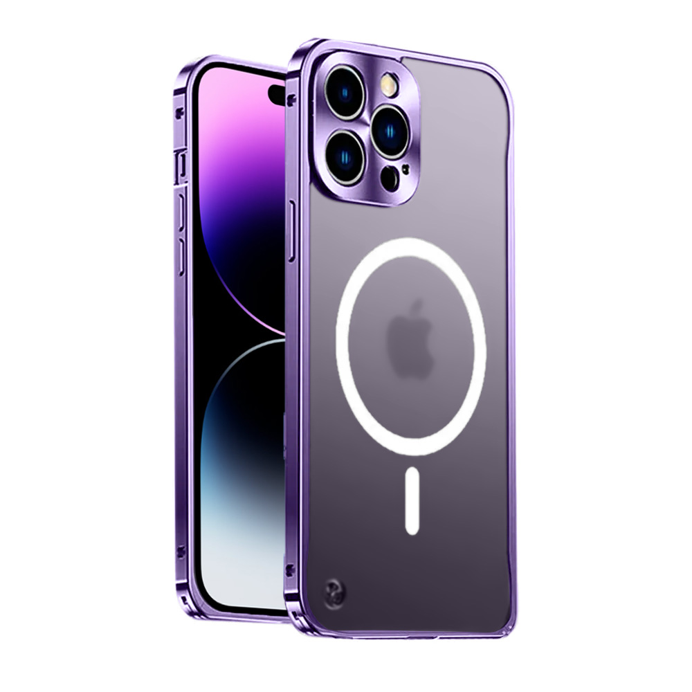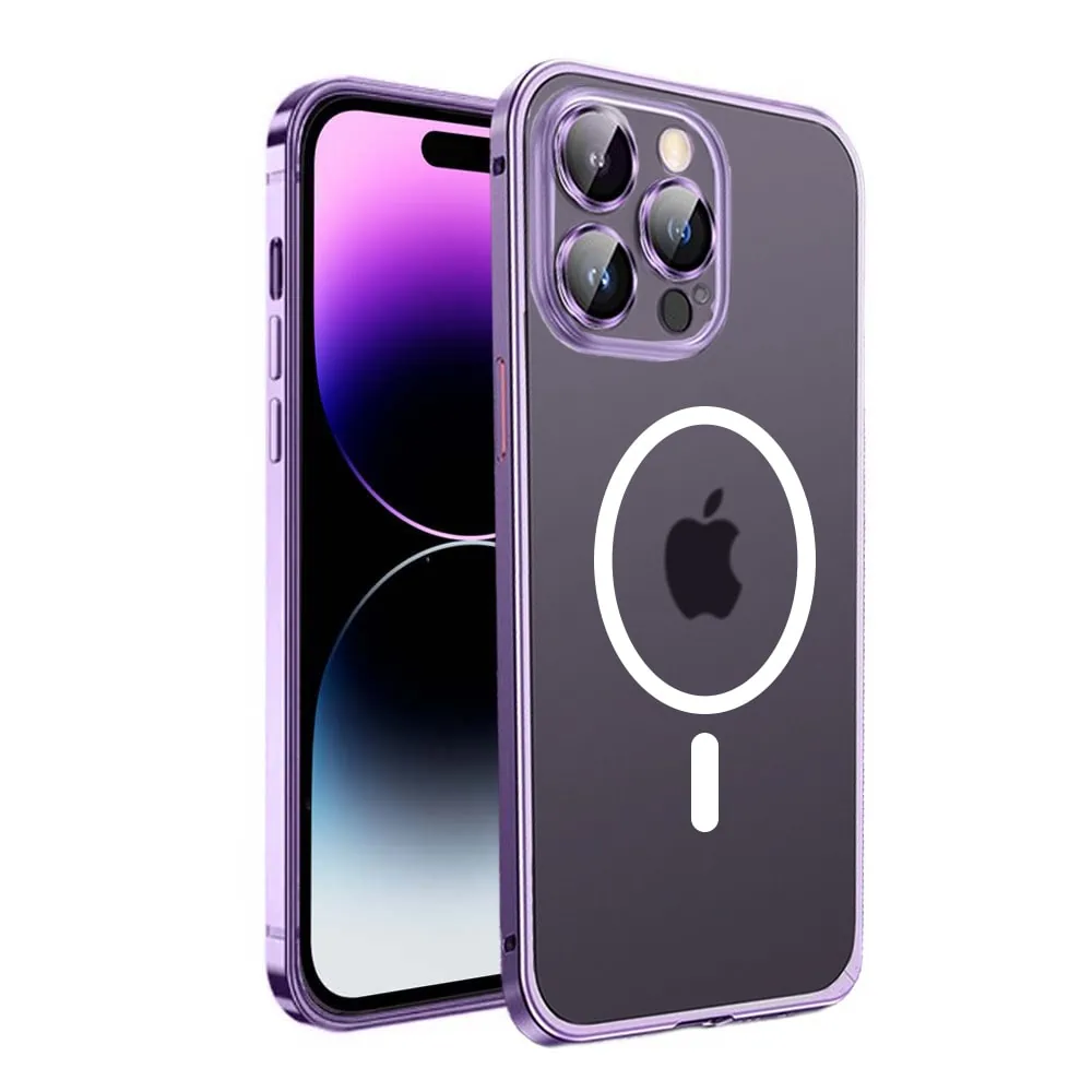 Etui do iPhone 14 Pro Magsafe Armor, metalowa ramka, twarde aluminium, purpurowe