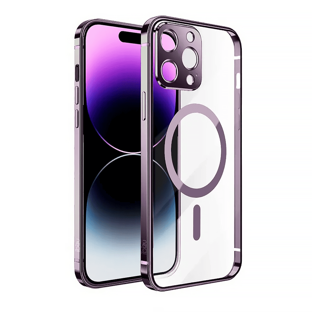 Etui do iPhone 14 Pro Ibizu Elite Skin, krystalicznie czyste z metalową ramką, głęboka purpura z MagSafe