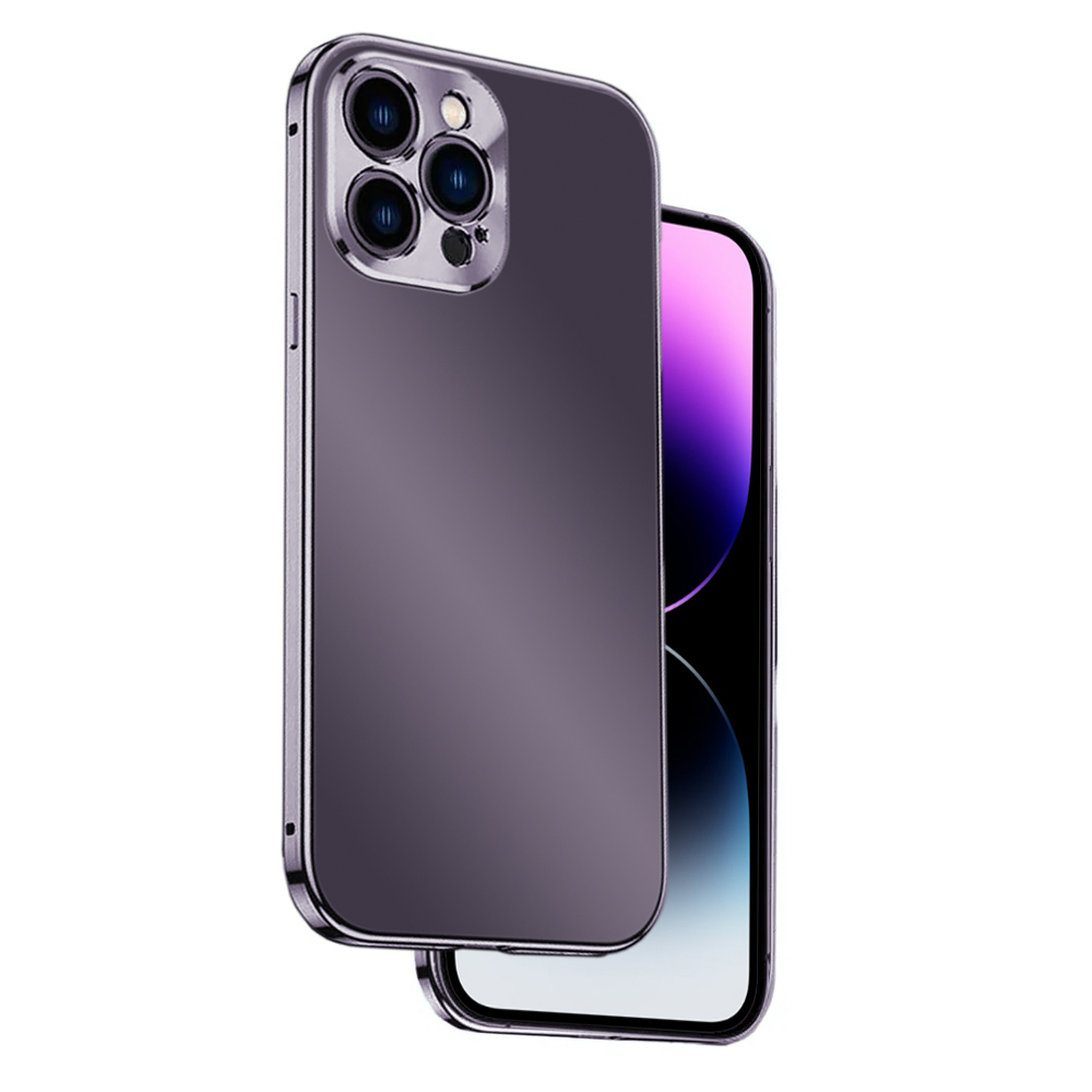 Etui do iPhone 14 Pro Luxury Skin ultra cienkie, pełny tył z metalową ramką, głęboka purpura