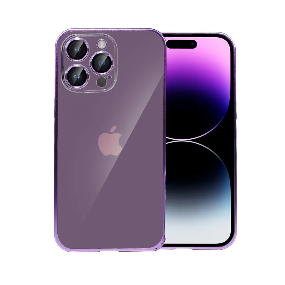 Etui do iPhone 14 Pro krystaliczny tył z metalową ramką, trwałe, eleganckie Sulada oryginal, purpurowe