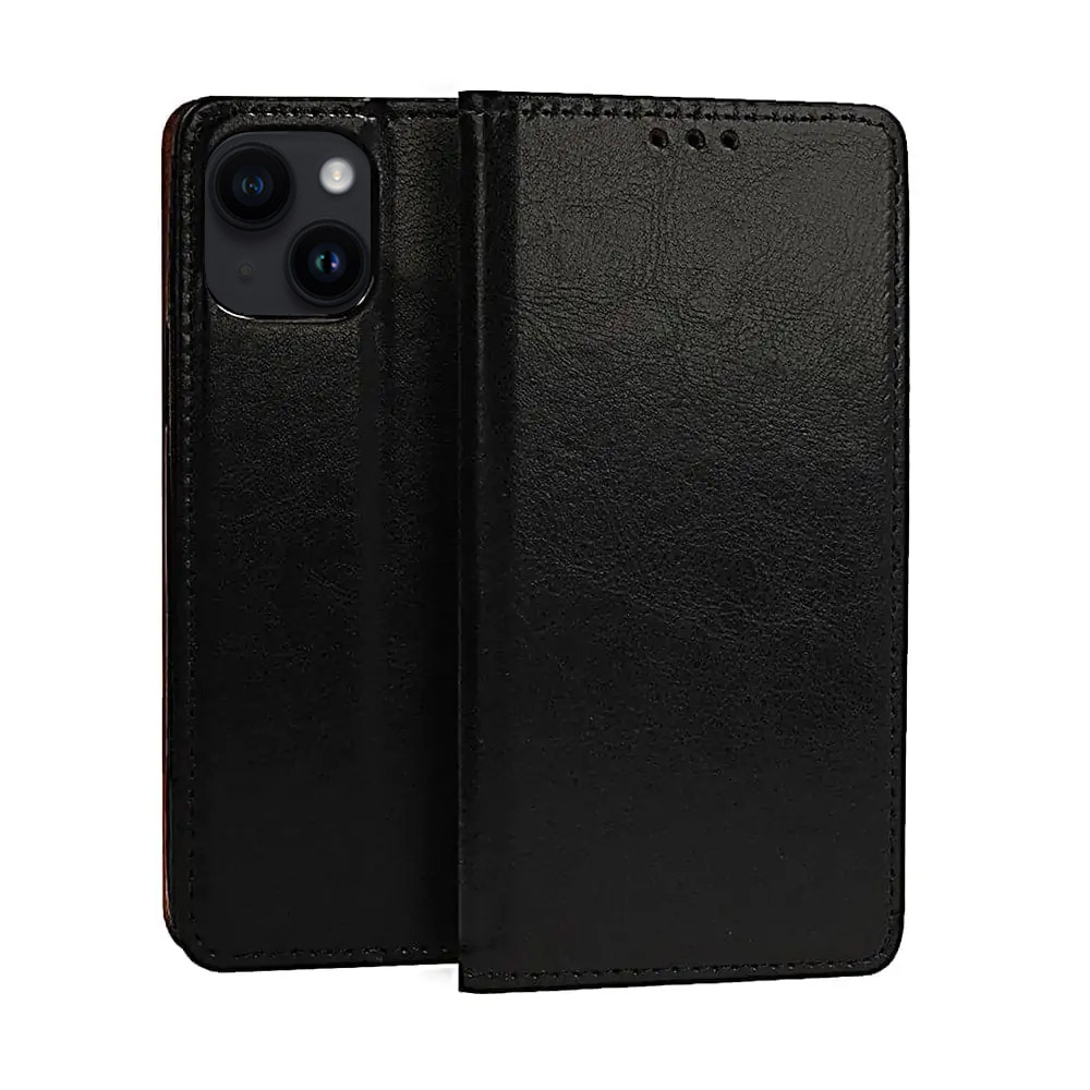Etui książka do iPhone 14 eleganckie skórzane, czarne