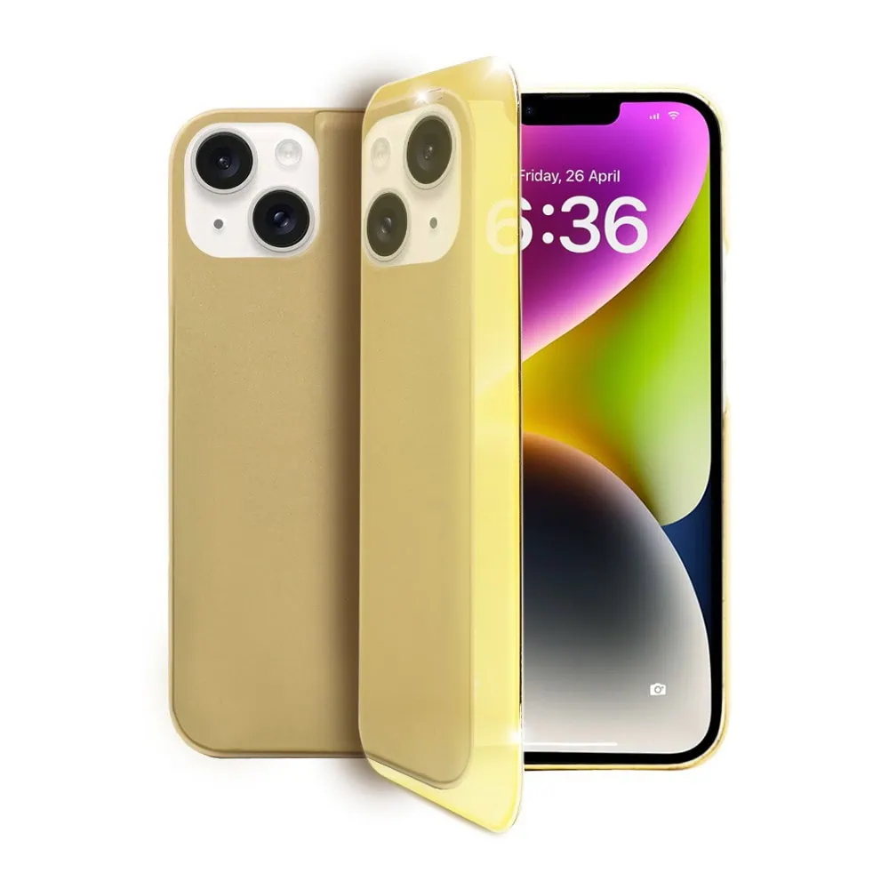 Etui do iPhone 14 eleganckie stylowe złote z klapką