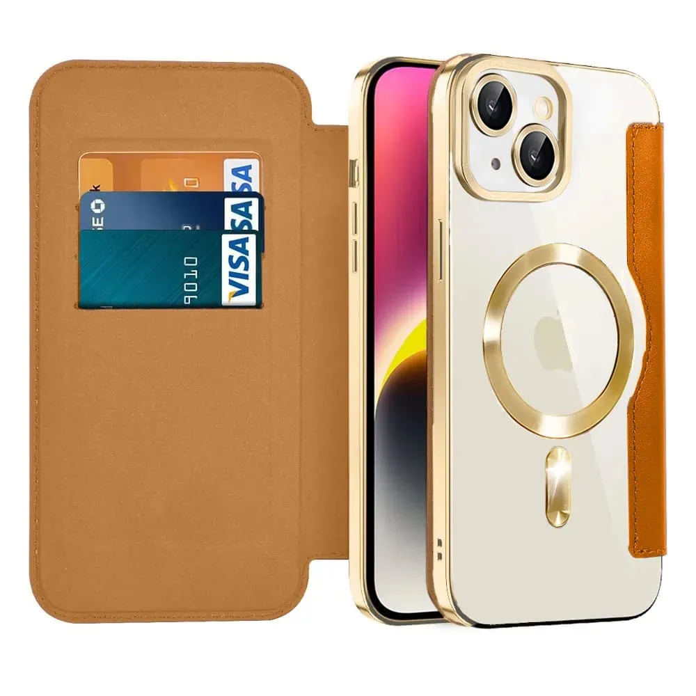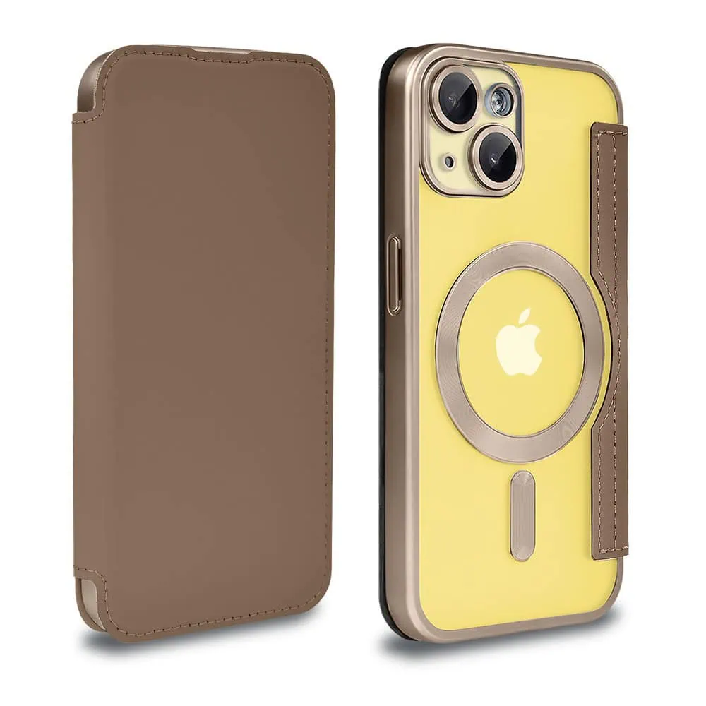 Etui do iPhone 14 typu książka Book Magsafe Lens Protect, z klapką, pustynny brąz
