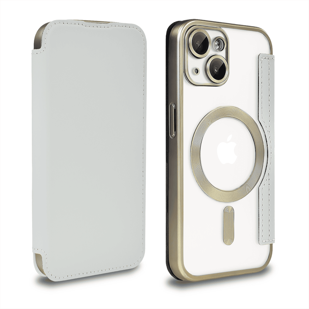 Etui do iPhone 14 klasyczne z magnetyczną klapką, złote
